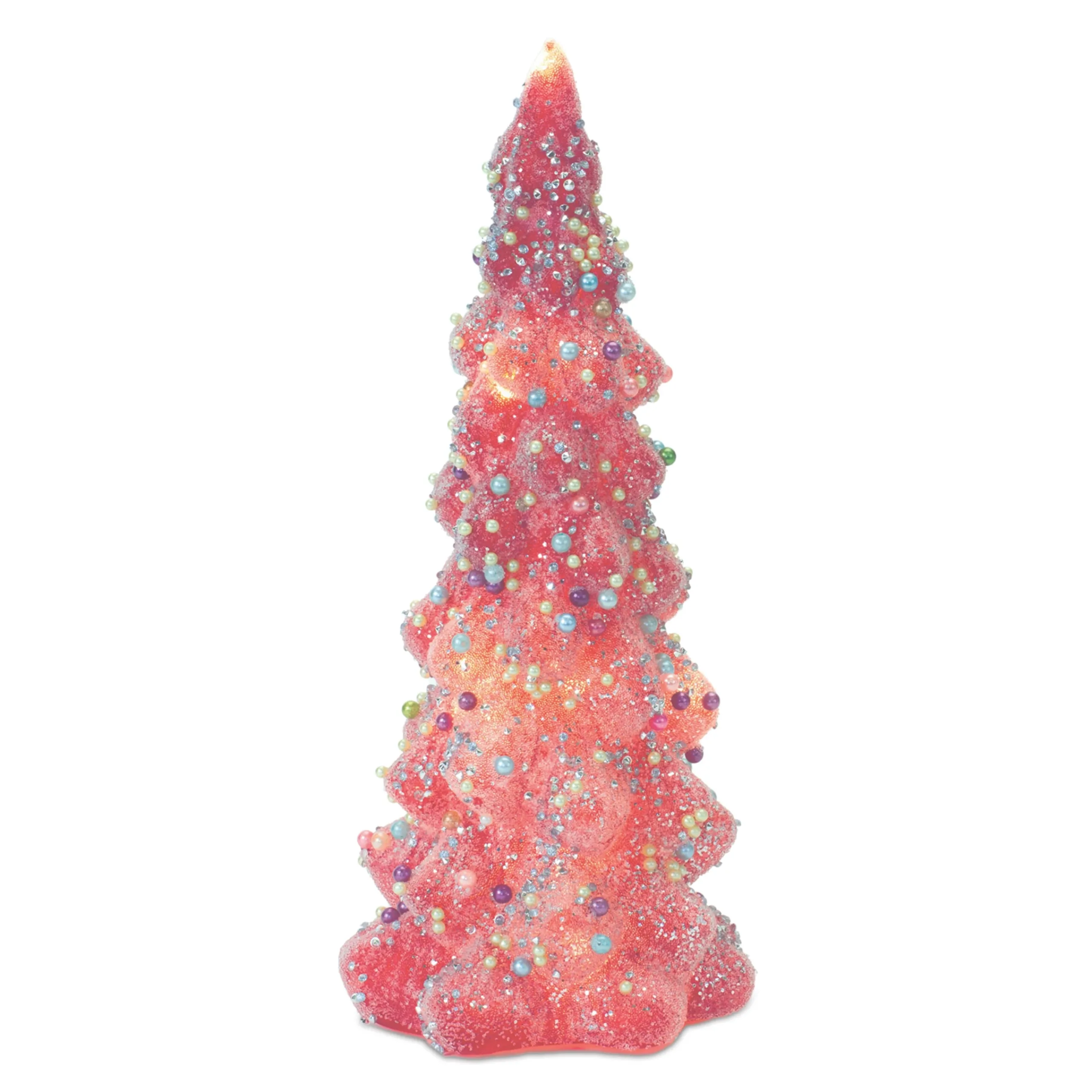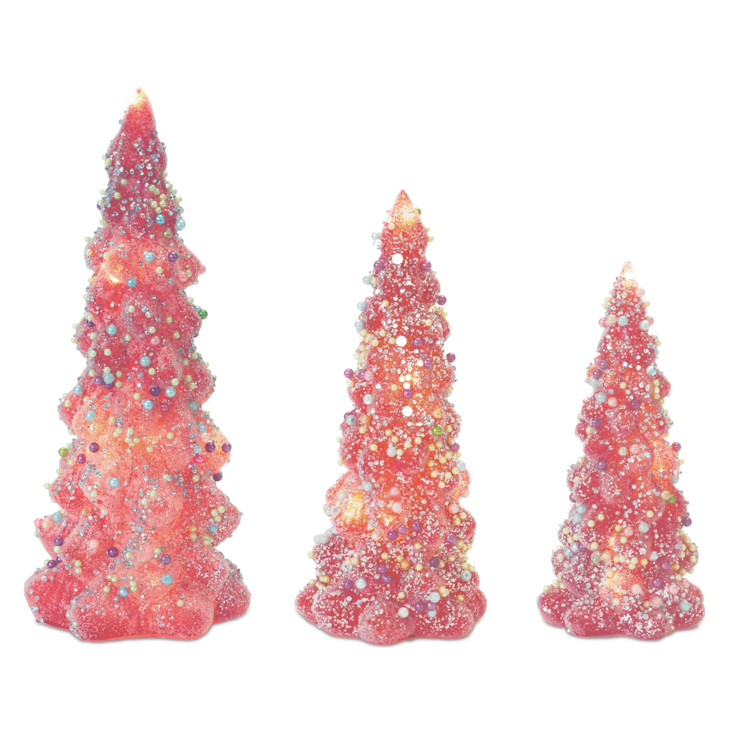 Melrose Trees & Wreaths>Set Of 3 Led Tree With Rainbow Pearl Christmas Ornaments 11.75″