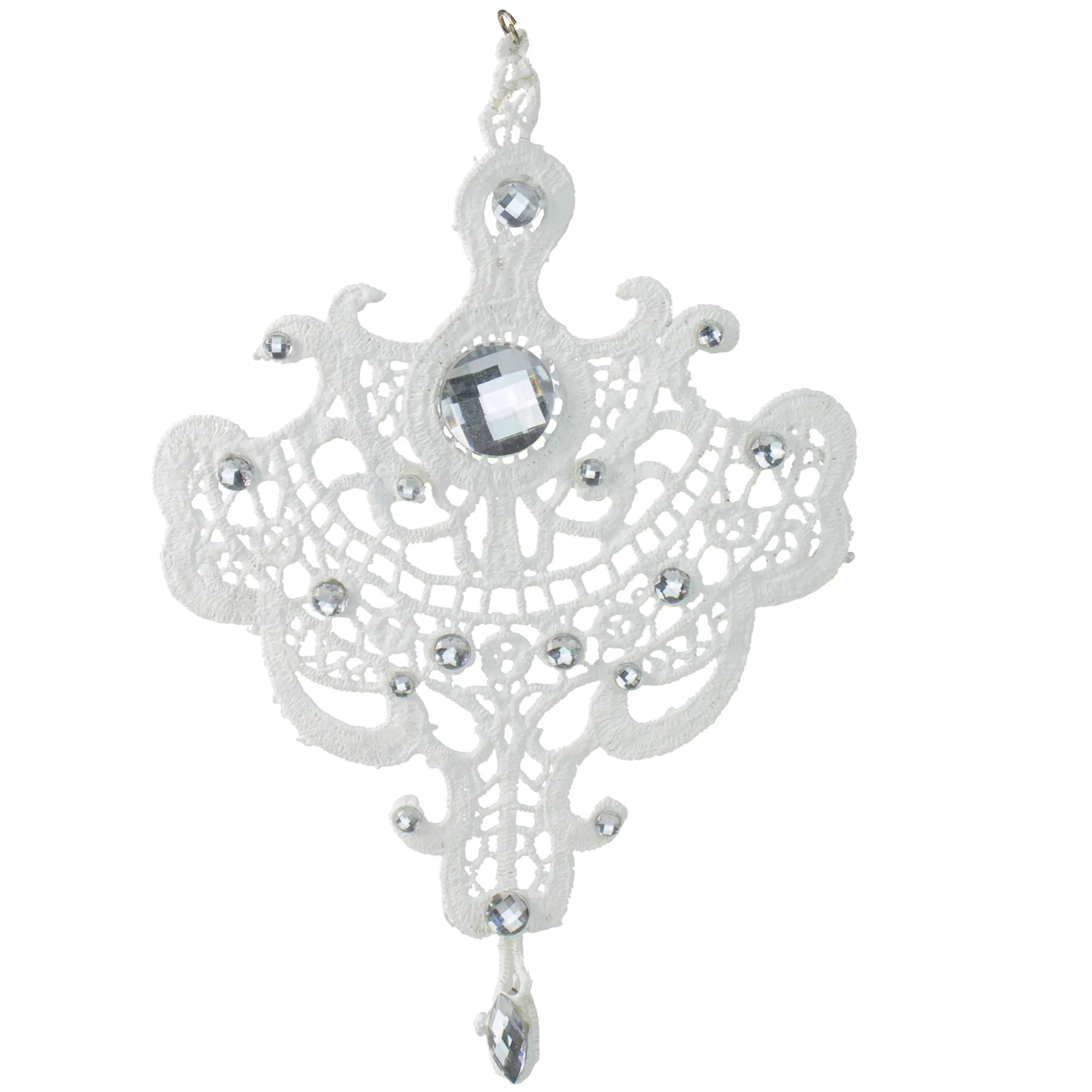 Melrose Victorian>9.5″ White Elegant Jeweled Lace Doily Style Christmas Ornament
