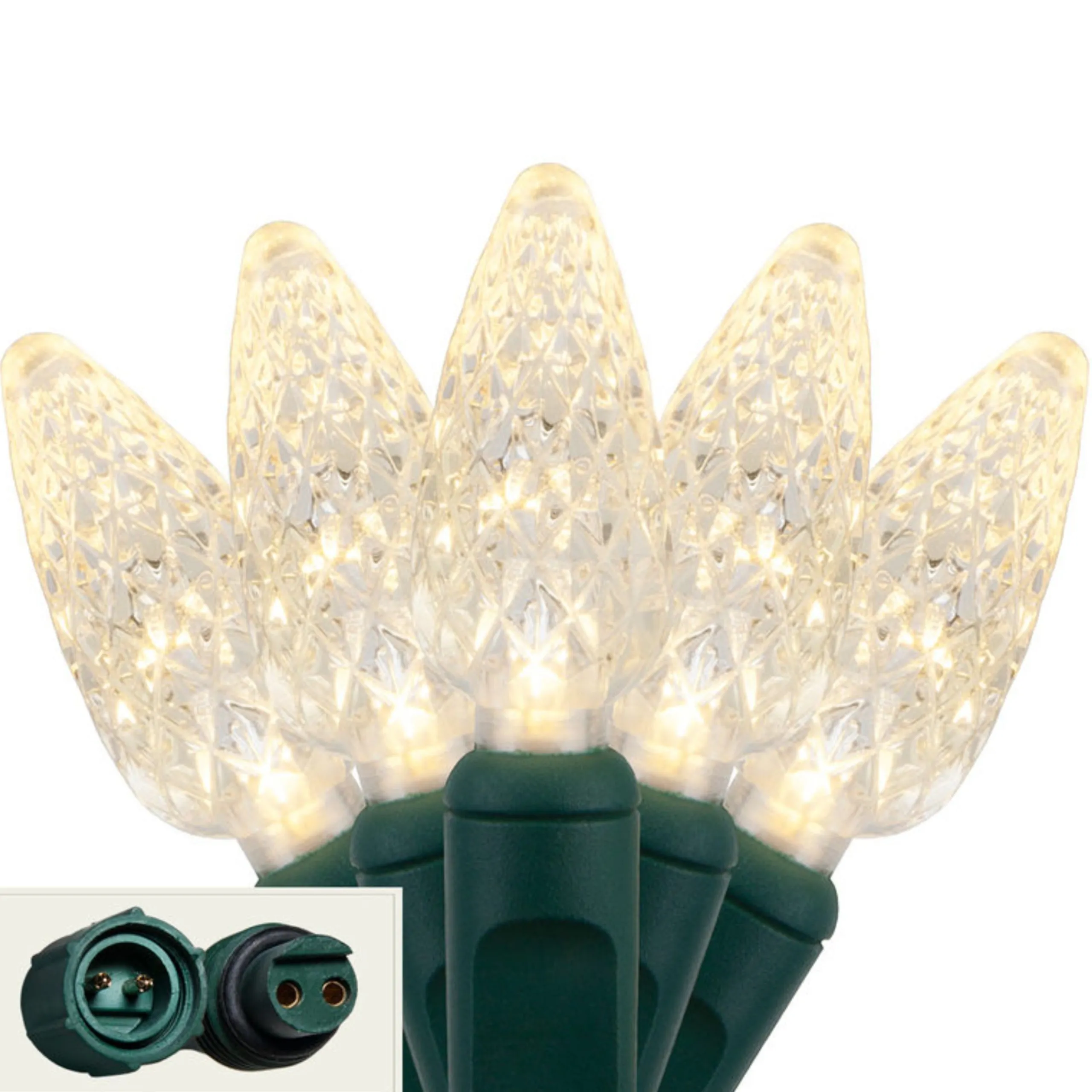 Commercial Grade Warm White C6 Led Lights On Green Wire