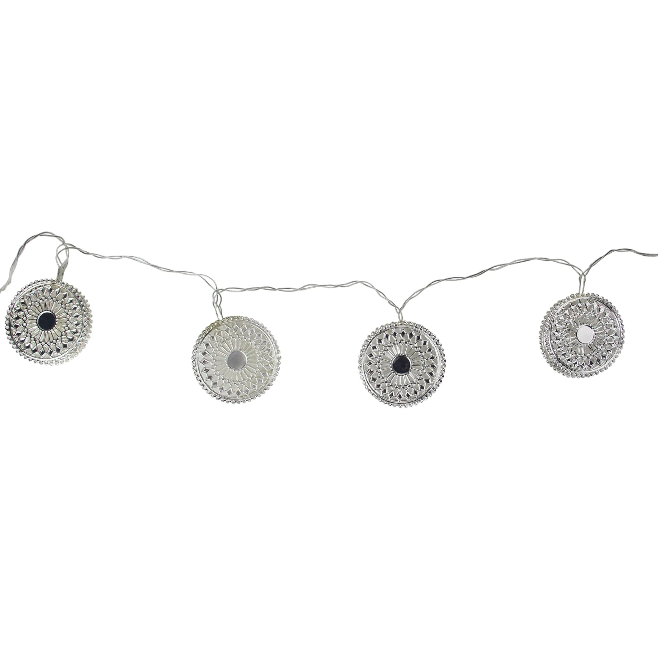 Midwest 10 Battery Operated Silver Dream Catcher Disk Christmas Lights – 68Ft, Clear Wire
