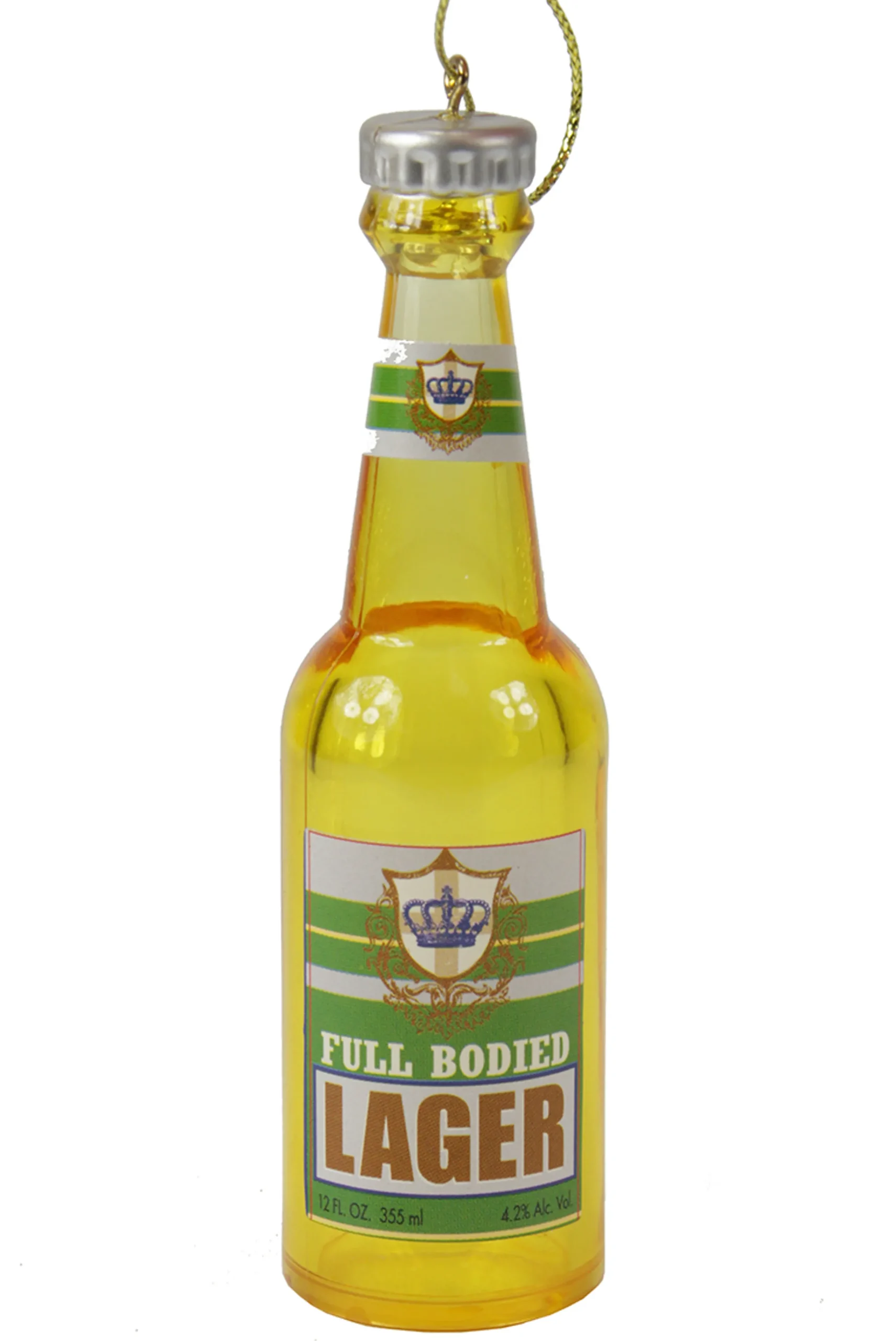 Midwest Food & Beverage>4.25″ Yellow And Green Full Bodied Lager Bottle Of Cheer Christmas Ornament
