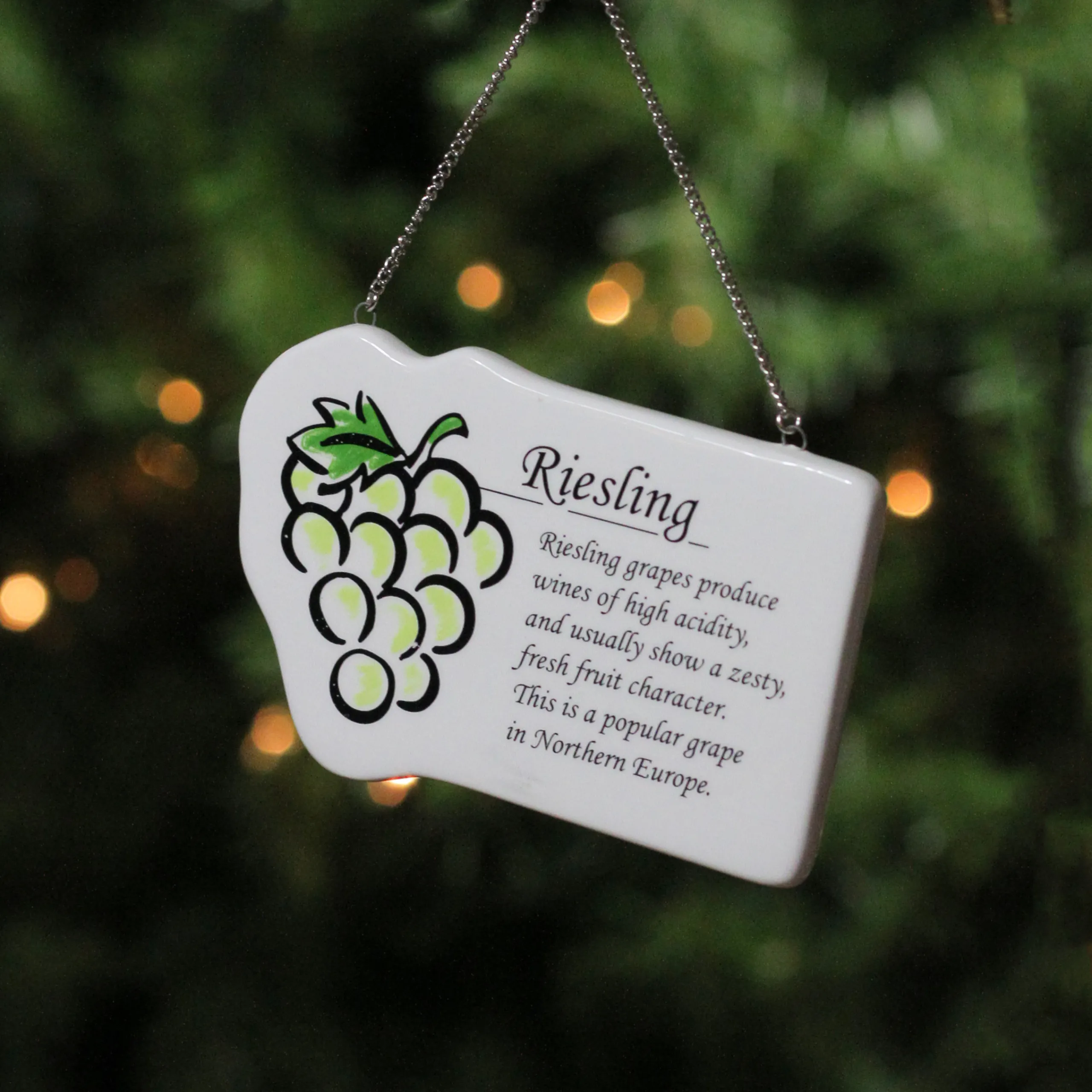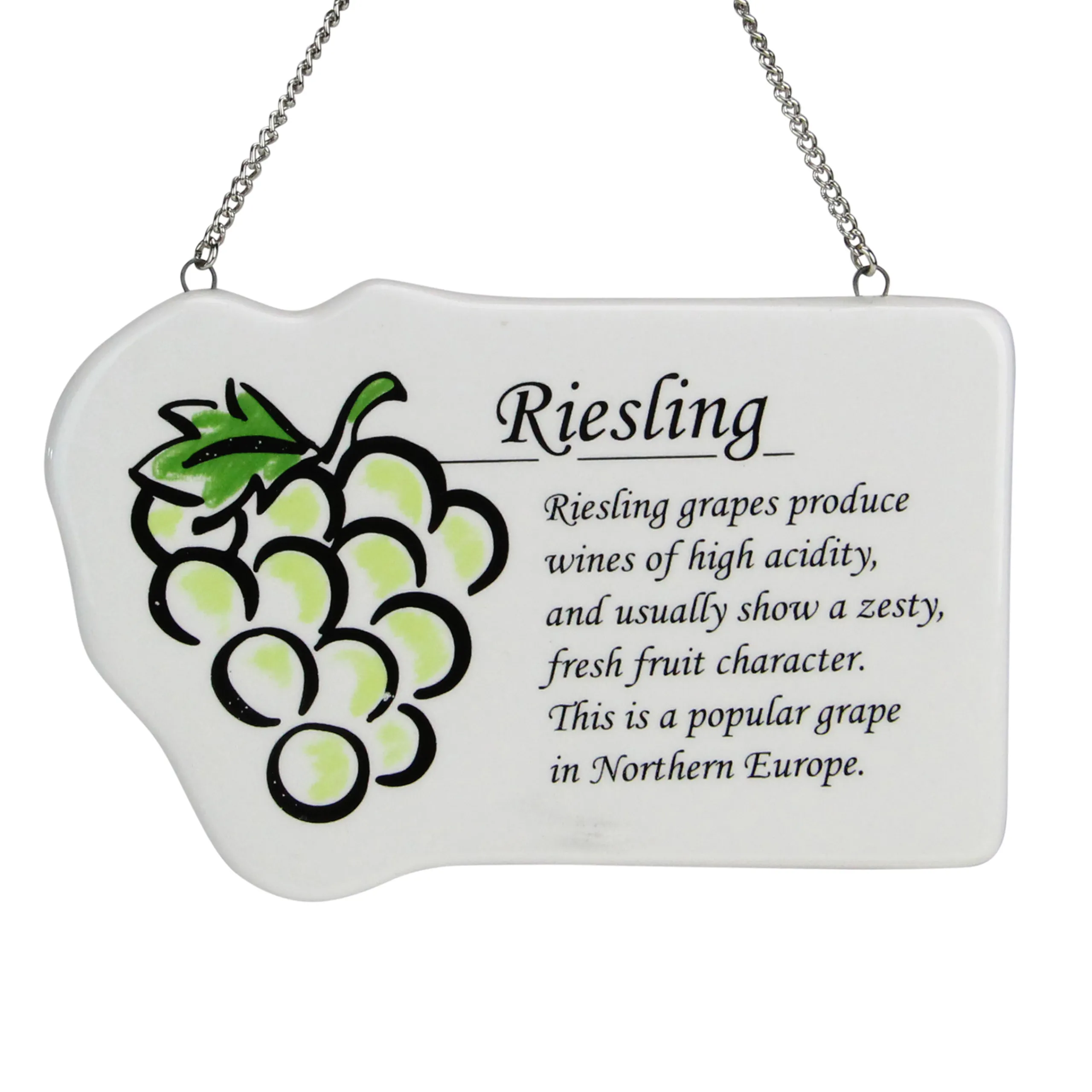 This Plaque Is The Perfect Ornament For Wine Lovers. Use These Plaques On Your Christmas Tree Or Kitchen Walls. This Ornament Is Made With Ceramic And Comes Printed With A Grape Bunch And With An Explanation Of What Type Of Grapes Are Used To Create Riesling Wine.