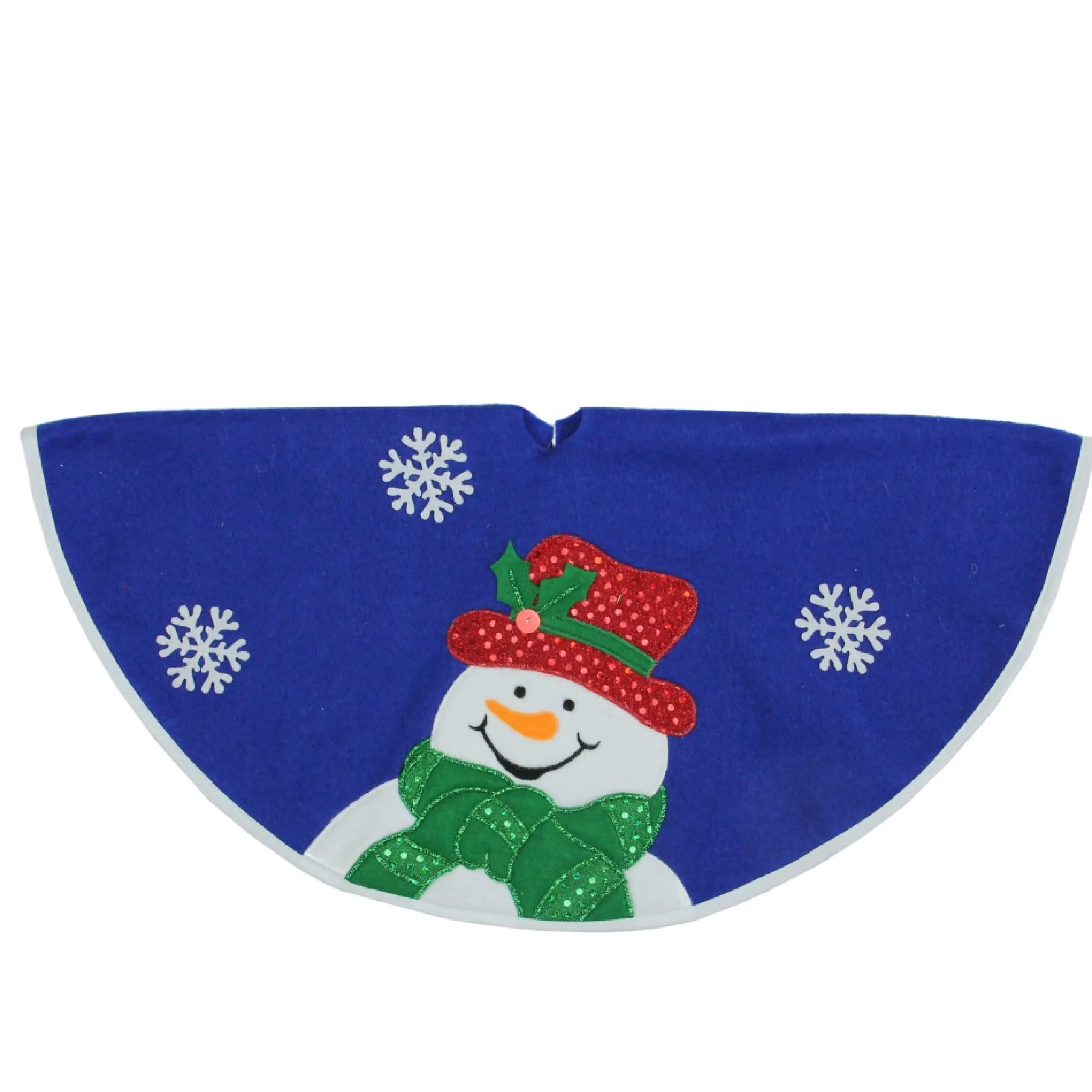 Christmas Is Not Only A Time For Love And Sharing But Also A Time For Fun. This Tree Skirt Is Blue Features A Smiling Snowman Wearing A Green Scarf And A Red Top Hat Accented With Holly Berry, Sequins, And Snowflakes. This Mini Tree Skirt Is Perfect For Adding An Extra Touch Of Fun To Your Holiday Decor. Great For All Kinds Of Holiday Decorations Including Tree Trimming, Mantle Displays, Tabletops, Centerpieces And More!