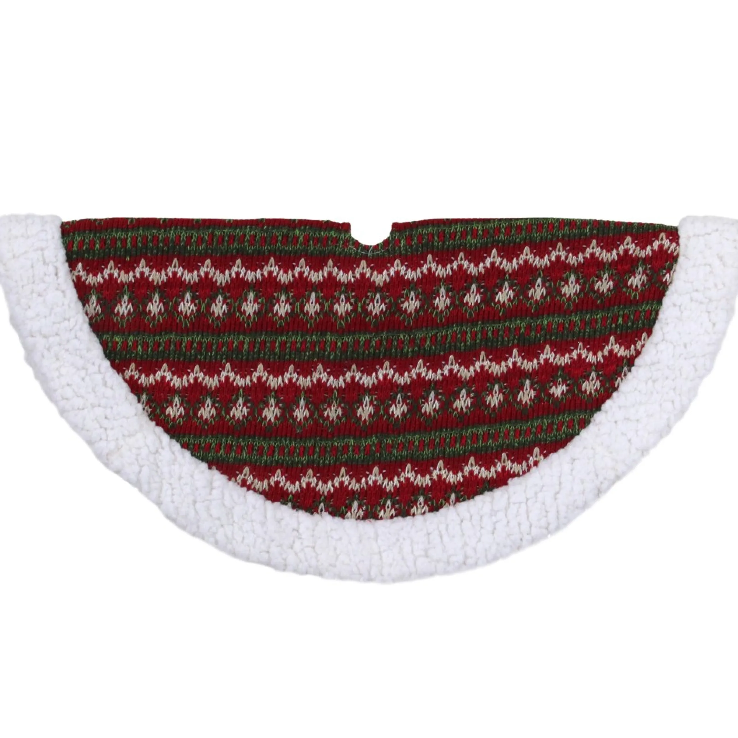 Mini Tree Skirts*Northlight 20″ Red And Green Lodge Knitted Mini Christmas Tree Skirt With High Pile Fleece Trim