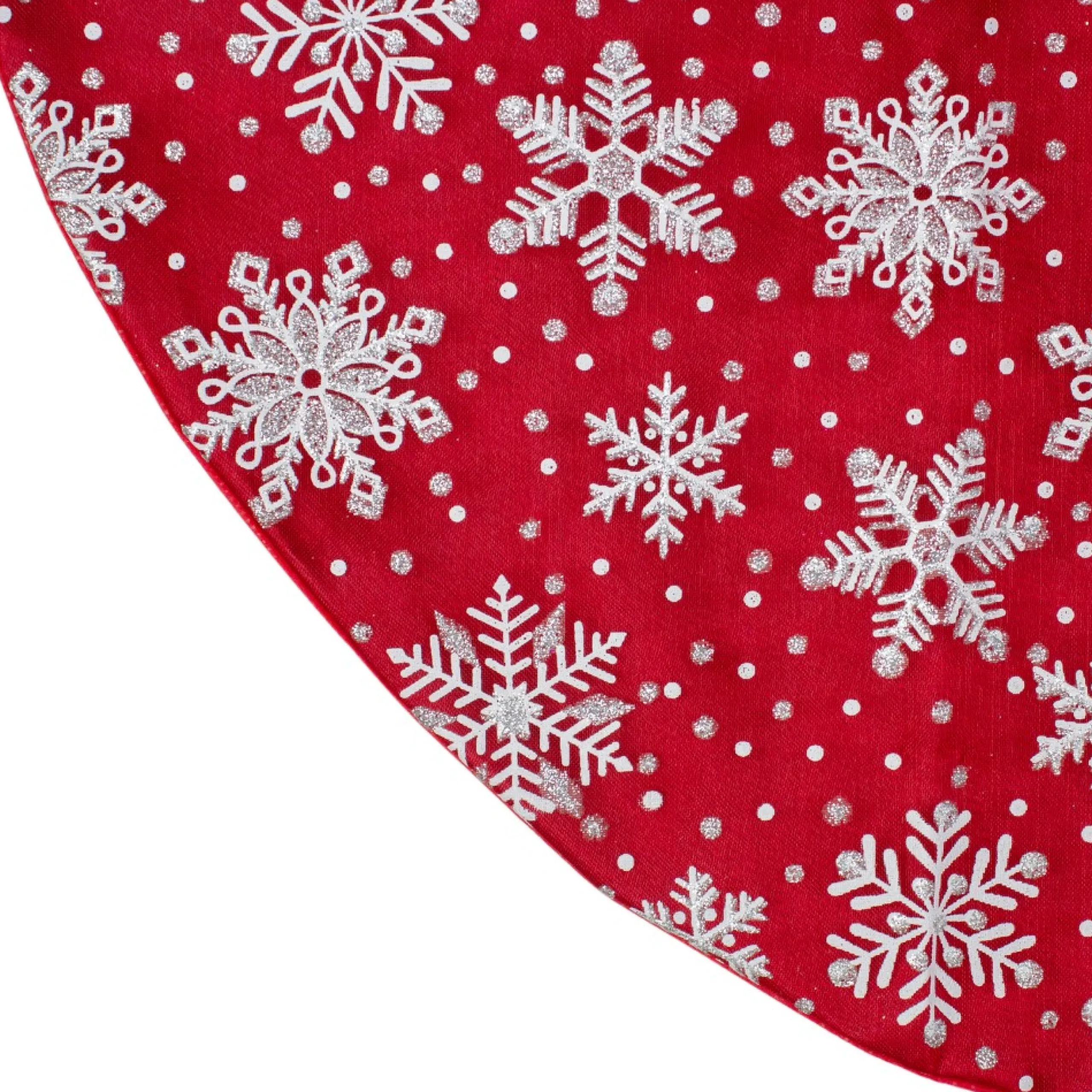 Add Some Sparkle To Your Christmas Decor This Year. The Tree Skirt Is Red With White Snowflakes That Have Glitter Accents, Perfect For Adding An Extra Bit Of Glitz Your Holiday Decor. Perfect For All Kinds Of Holiday Decorations Including Tree Trimming, Mantle Displays, Table Tops, Centerpieces And More!