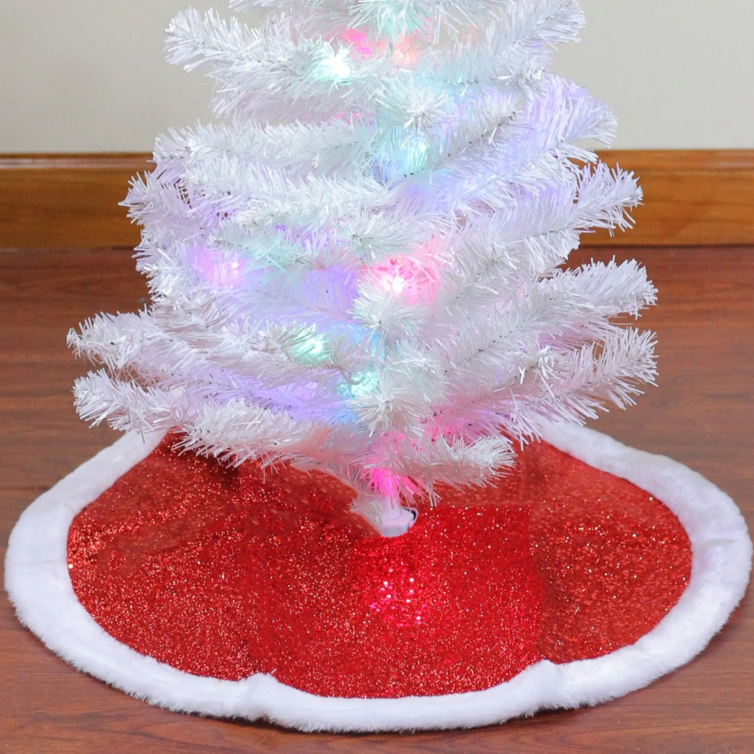 Mini Tree Skirts*Northlight 20″ Red Glittered Mini Christmas Tree Skirt With A Faux Fur Trim