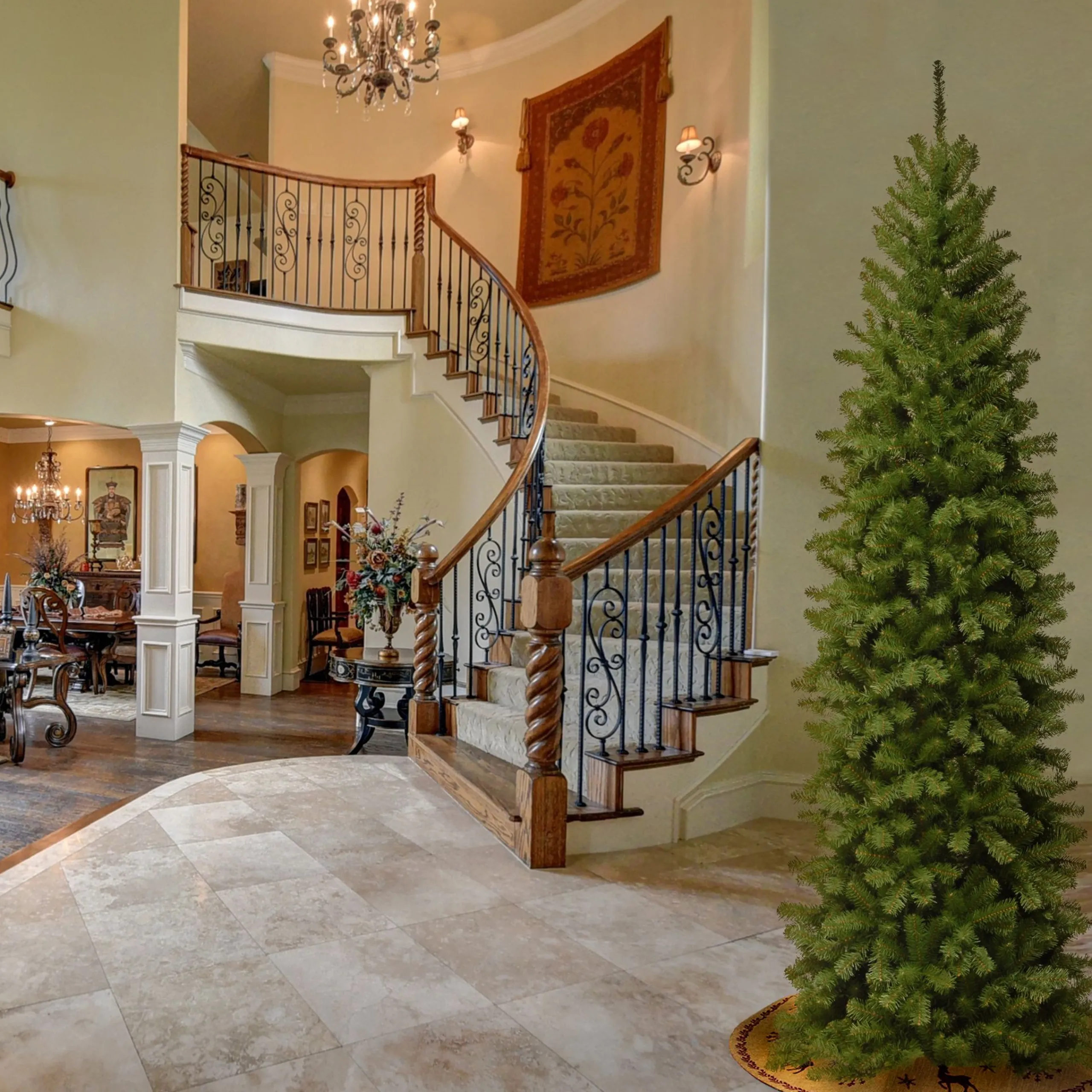National Tree Company 9 And 9.5 Feet Tall>9′ Pencil North Valley Spruce Slim Artificial Christmas Tree, Unlit