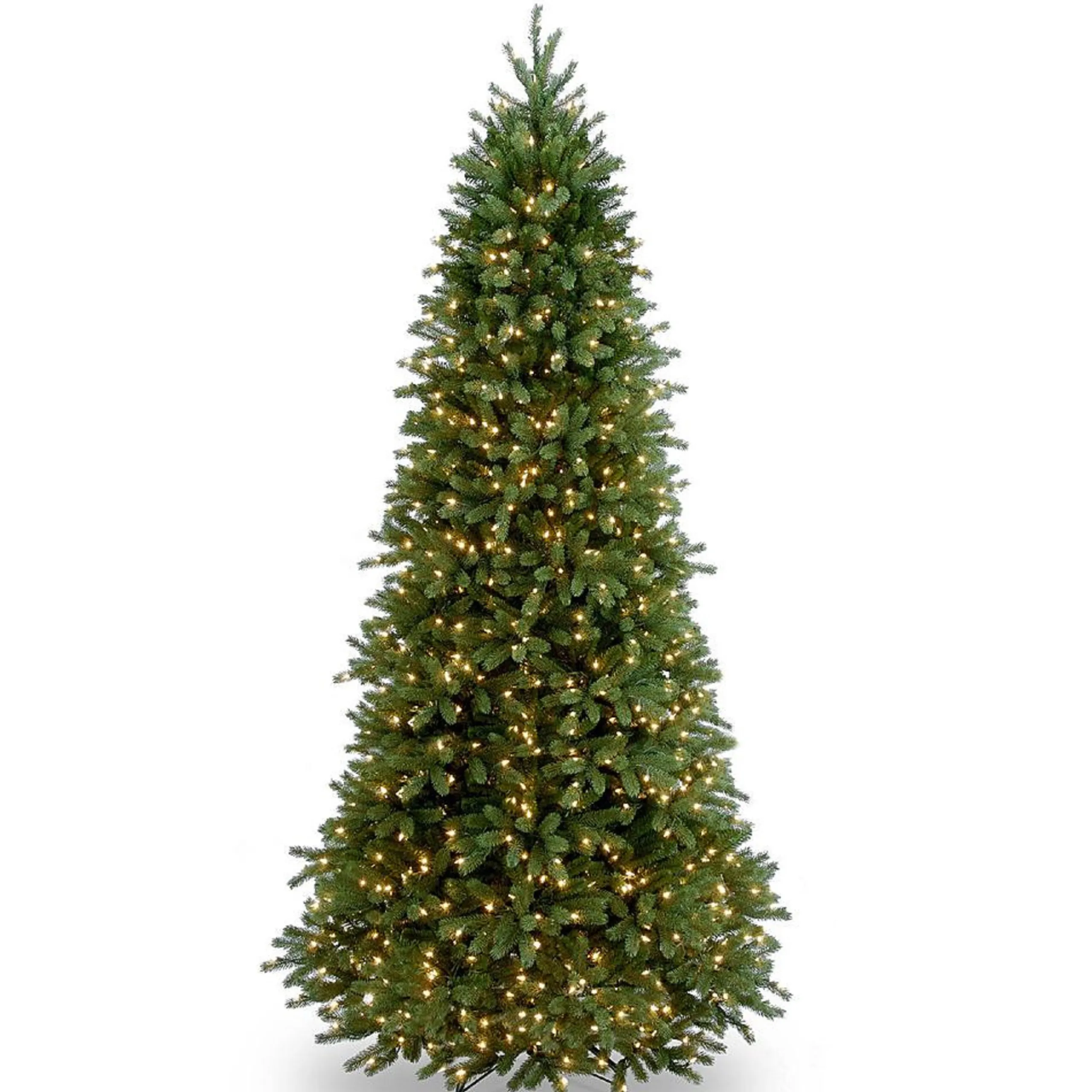 National Tree Company 9 And 9.5 Feet Tall>9′ Pre-Lit Slim Jersey Fraser Fir Artificial Christmas Tree, White Lights