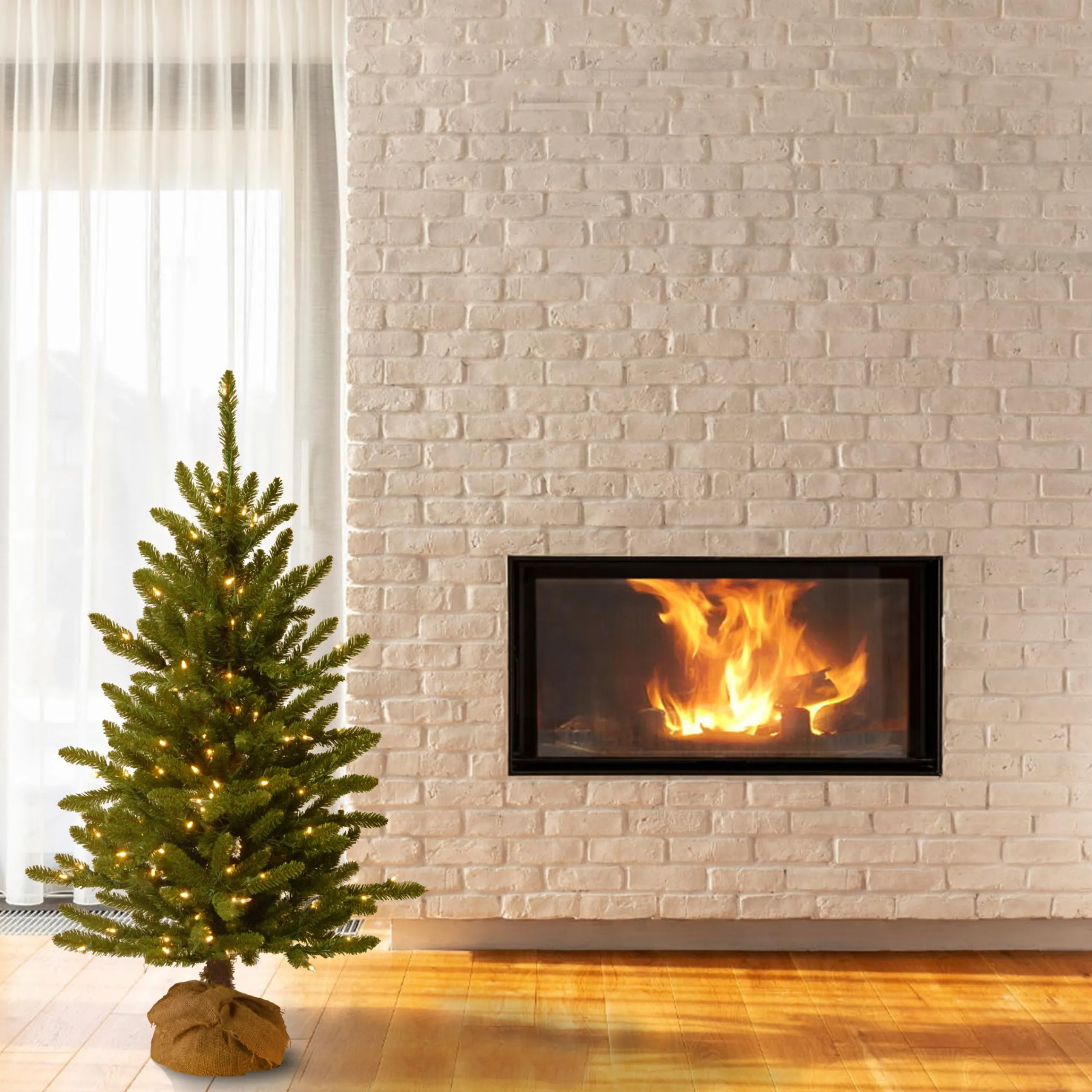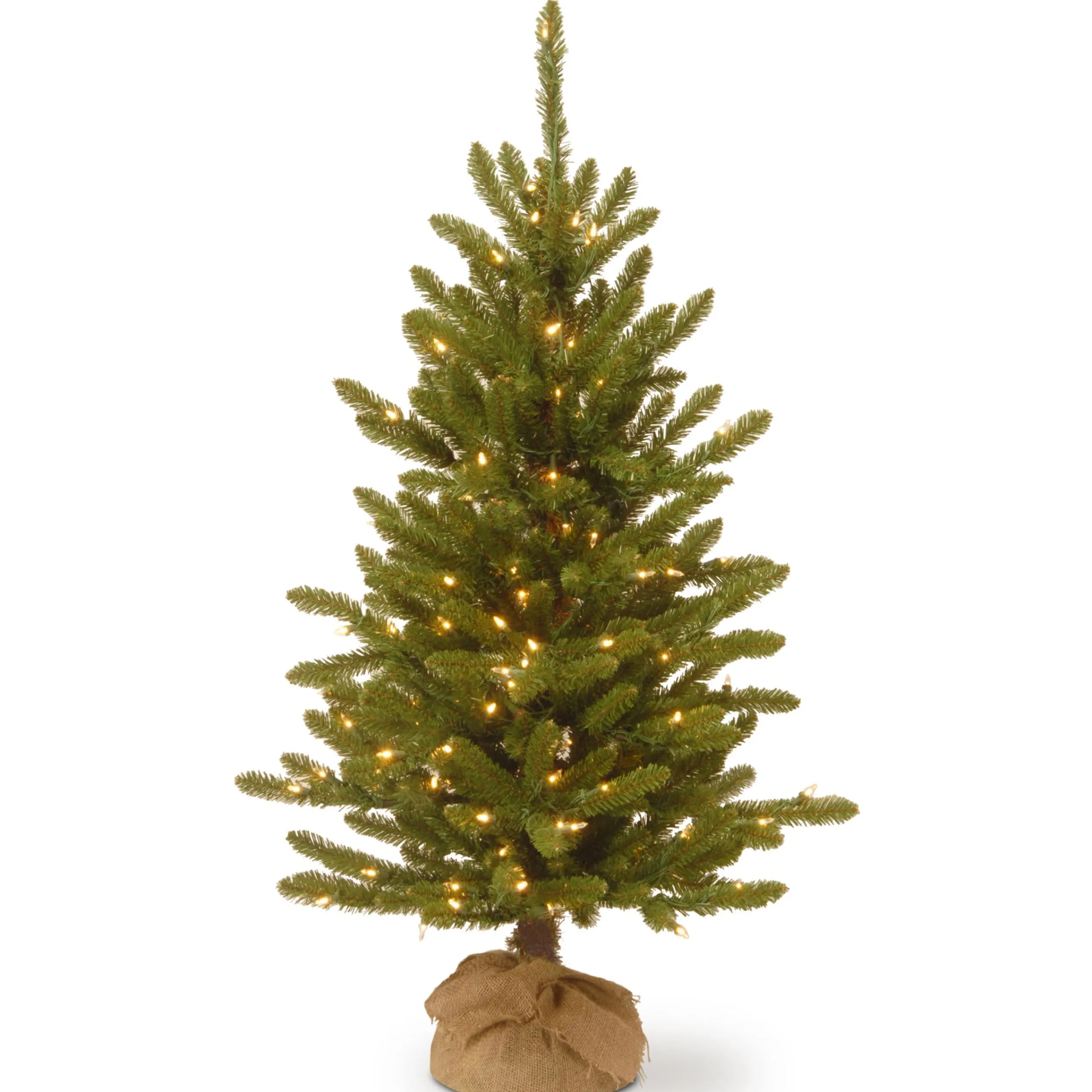 National Tree Company Potted Trees>4′ Pre-Lit Kensington Burlap Artificial Christmas Tree, Clear Lights