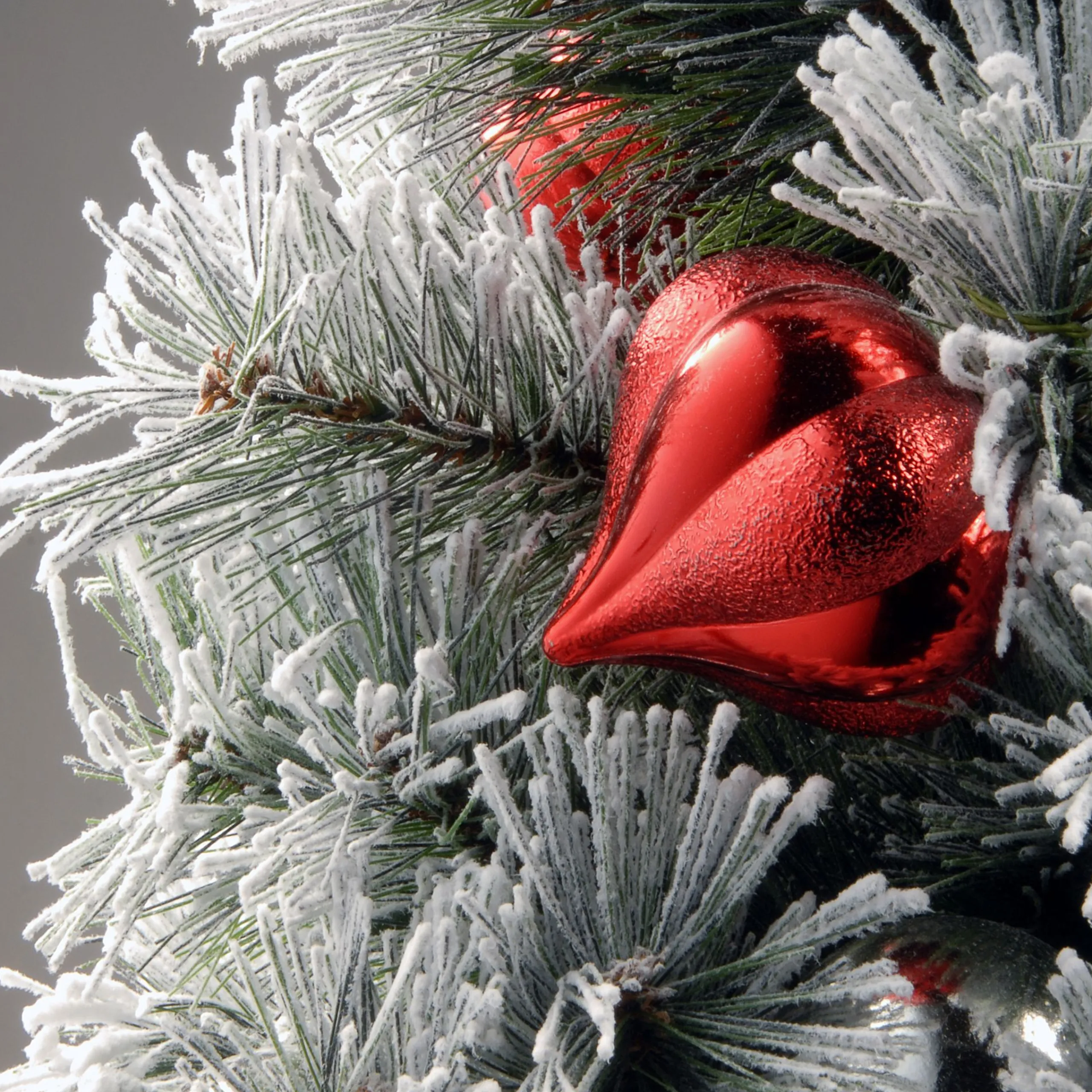 This Pre-Lit Potted Snowy Bristle Pine Will Create A Welcome, Festive Atmosphere For Your Holiday Season. This Is Trimmed With Red And Silver Ball Ornaments. This Will Light Up Your Main Entrance And Make A Lasting Impression On Your Friends.