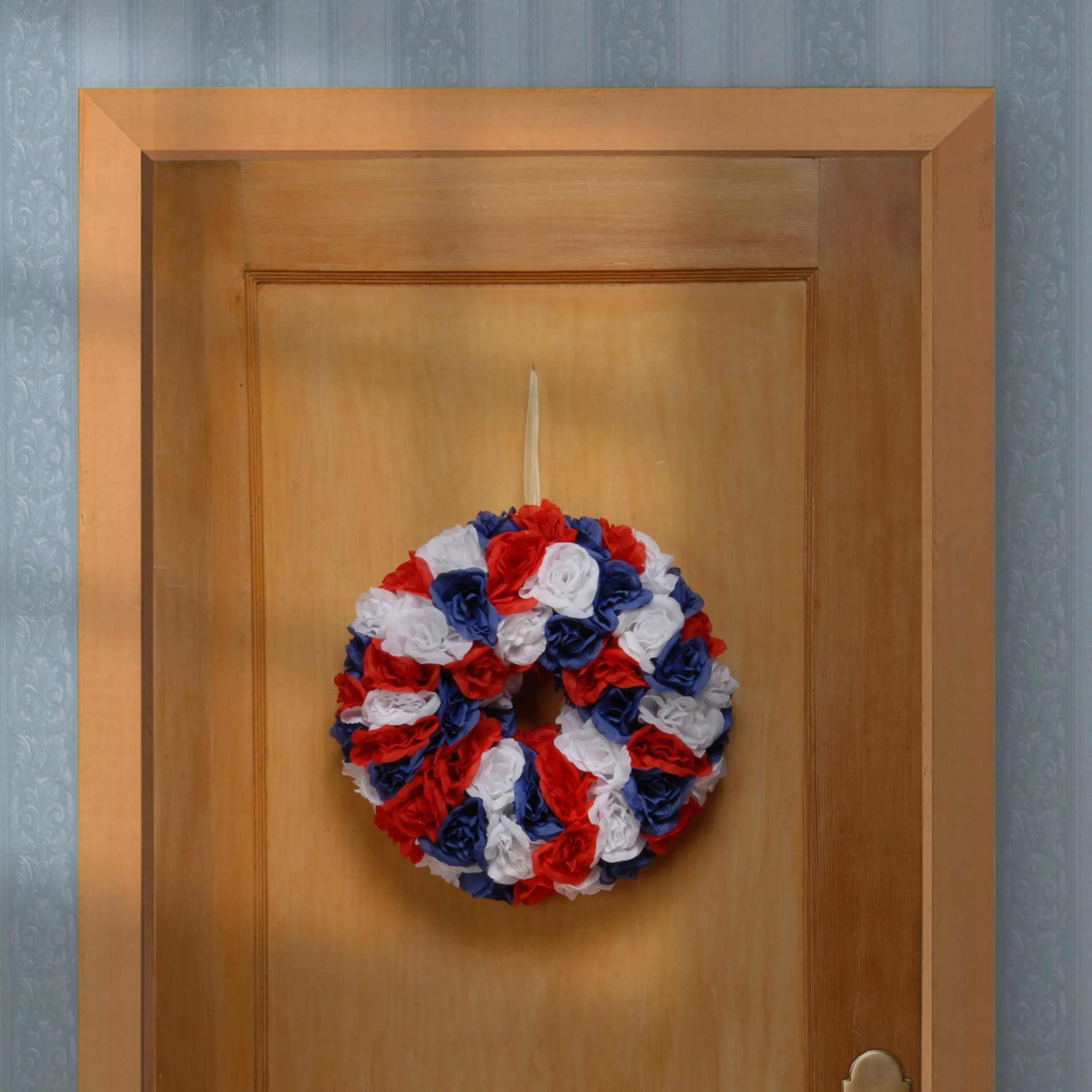 Add This Patriotic Rose Wreath To Your Christmas Decor! This Red, White, And Blue Rose Wreath Will Add Shine And Pops Of Color To Your Holiday Decor. Perfect To Decorate Your Door, Window, Or Wall.