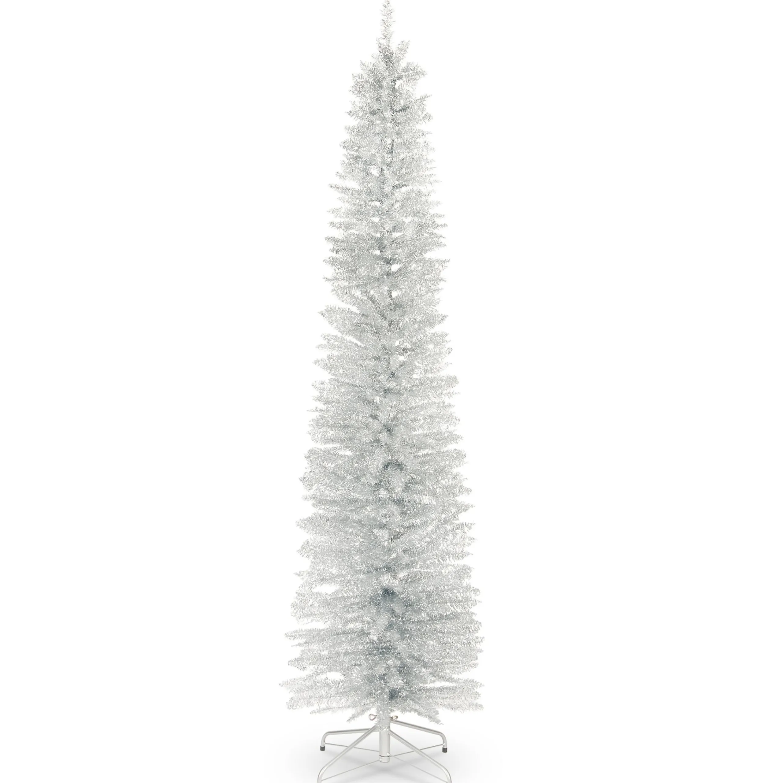 National Tree Company Silver Trees>7′ Pencil Silver Tinsel Artificial Christmas Tree, Unlit