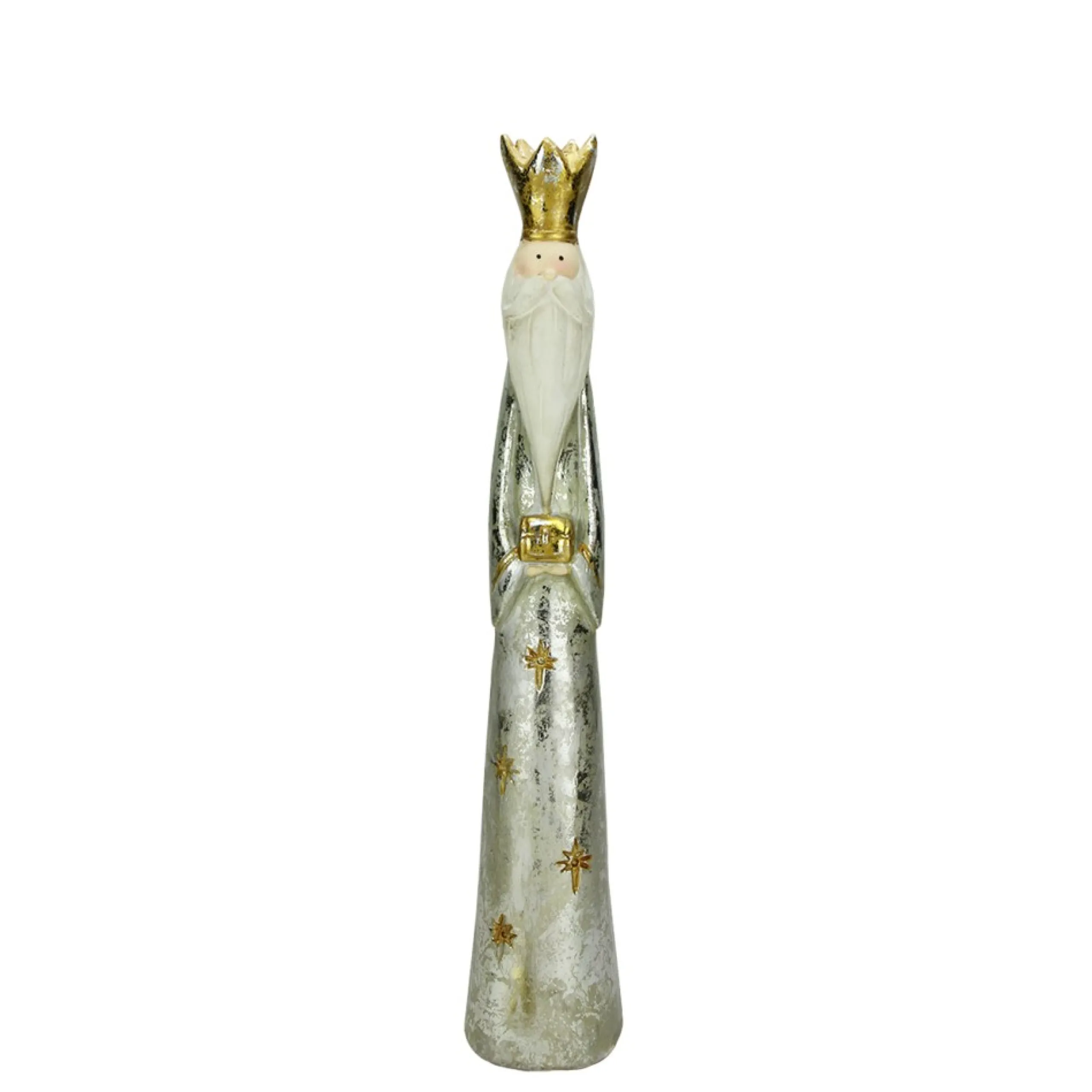 Nativities*A & B Floral 23.5″ Silver And Gold Distressed Finish King Balthazar Wise Man Christmas Nativity Figurine