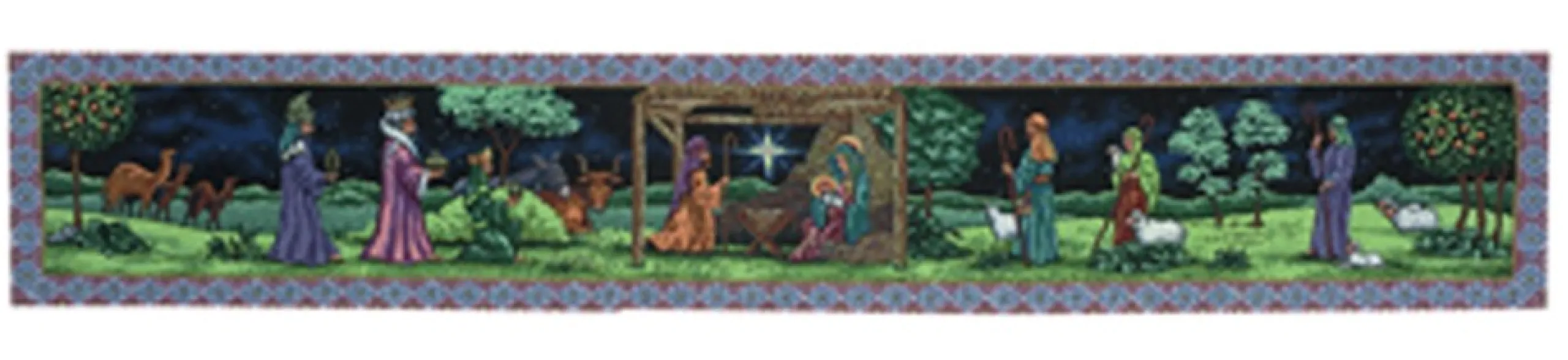 Nativities*Woven Textile Company 72″ Green And Blue First Christmas Nativity Scene Table Runner