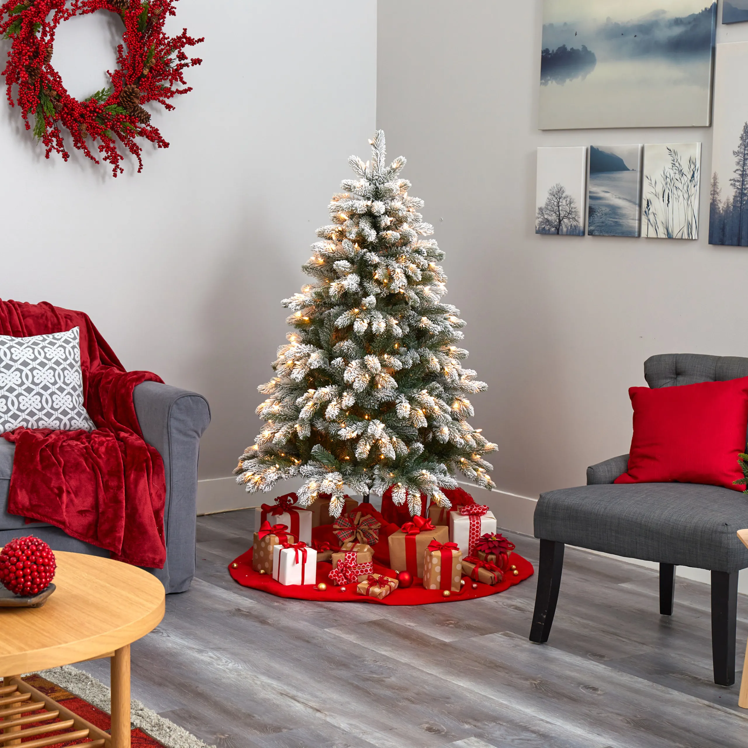 Nearly Natural 5 And 5.5 Feet Tall>5′ Pre-Lit Flocked South Carolina Artificial Christmas Tree, Clear Led Lights