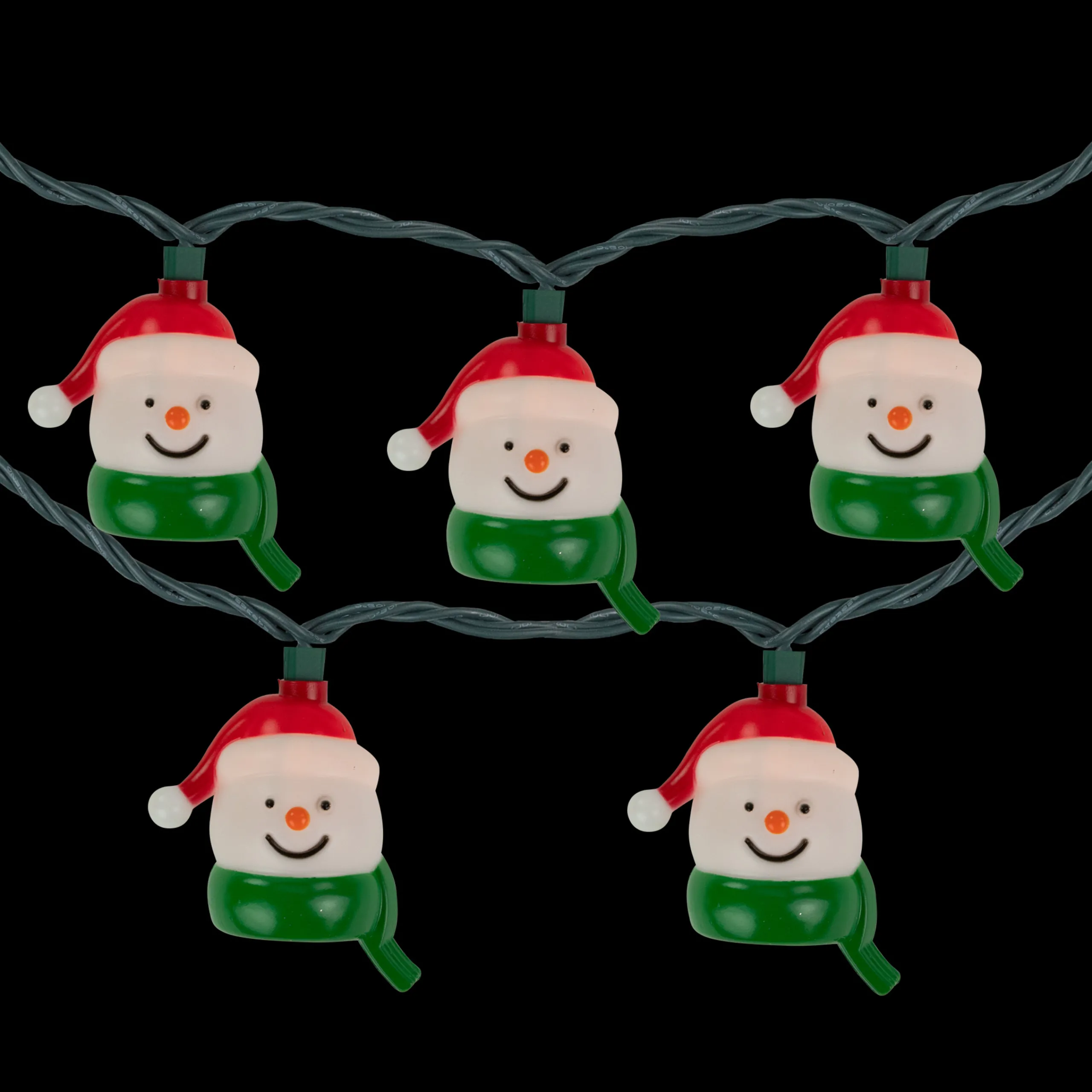 Northlight 10 Count Snowman Heads With Scarves Christmas Light Set, 7.5Ft Green Wire
