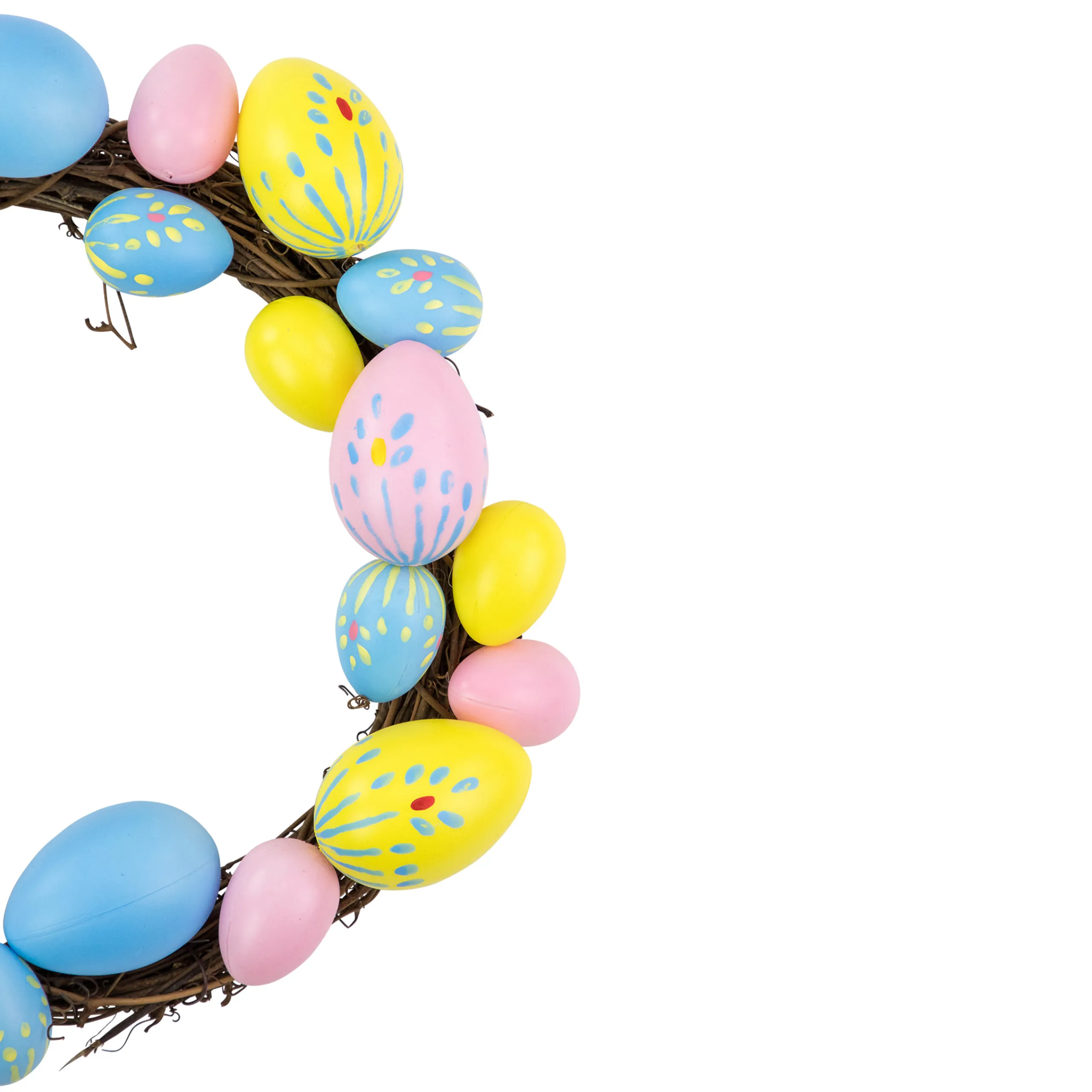 Northlight 10″ Pastel Pink, Yellow And Blue Floral Stem Easter Egg Spring Grapevine Wreath