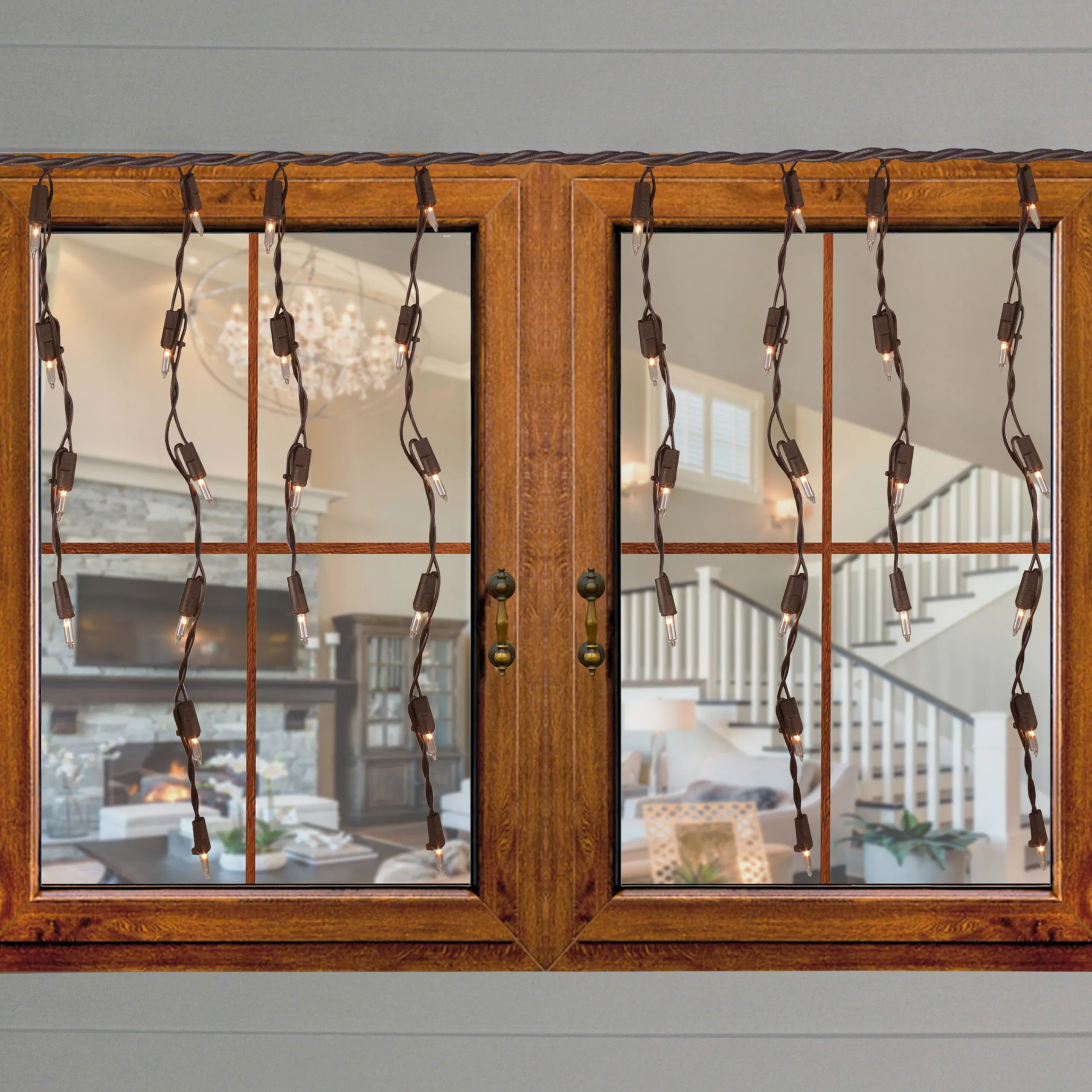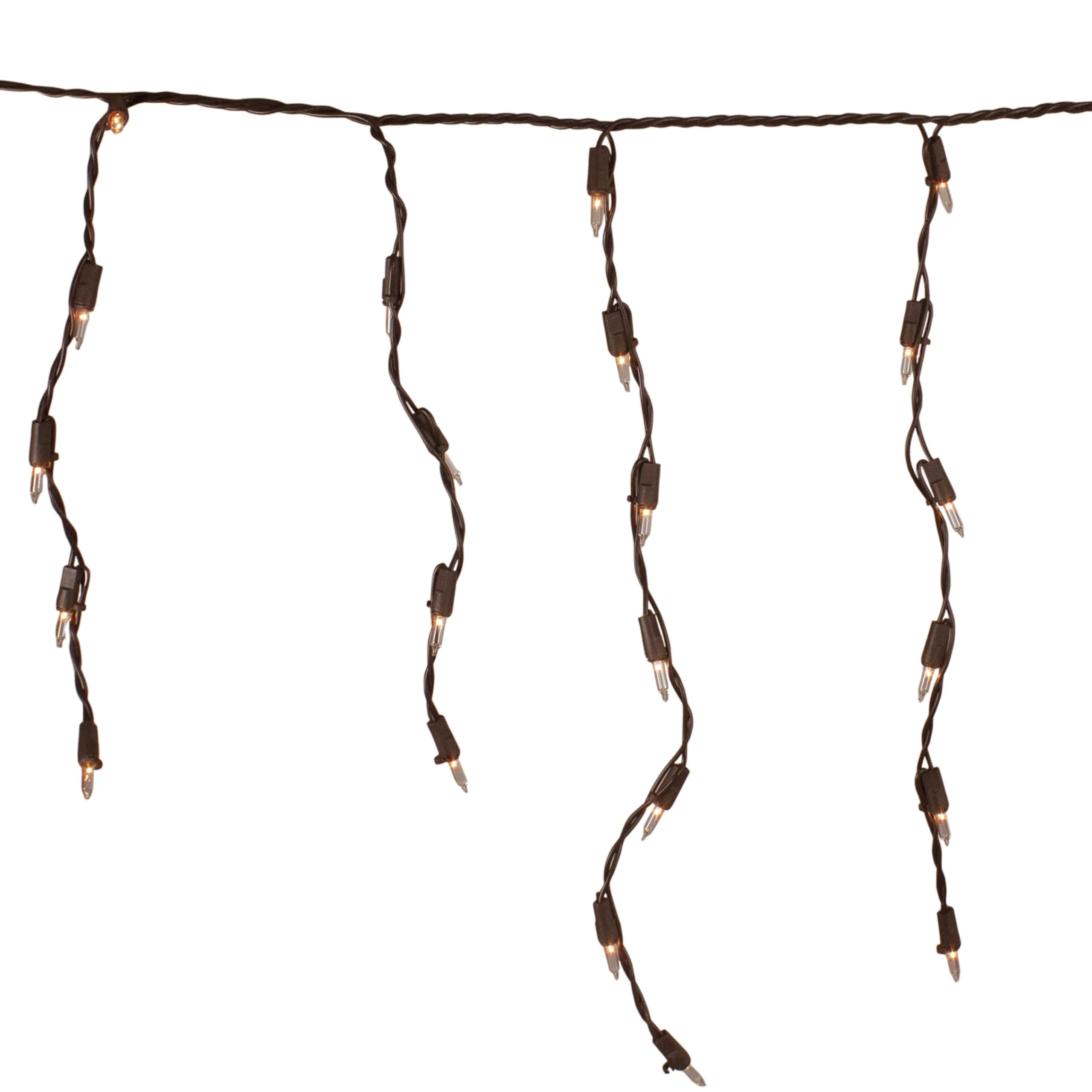 Northlight 100 Count Clear Mini Icicle Christmas Lights – 3.5 Ft Brown Wire