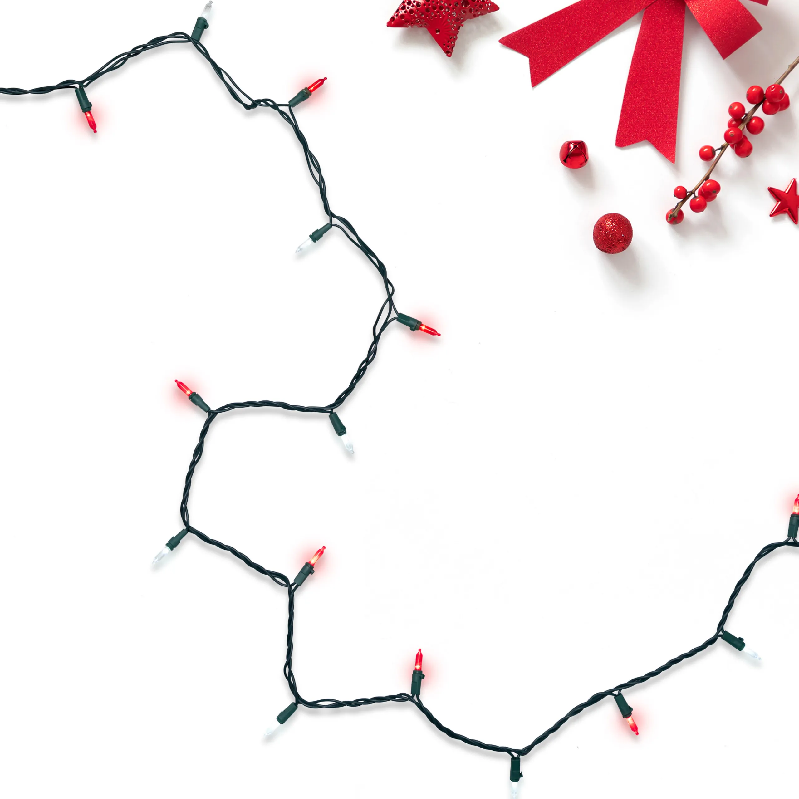GKI/Bethlehem Lighting 100 Red Commercial Grade Mini Christmas Lights – 45.5 Ft Green Wire