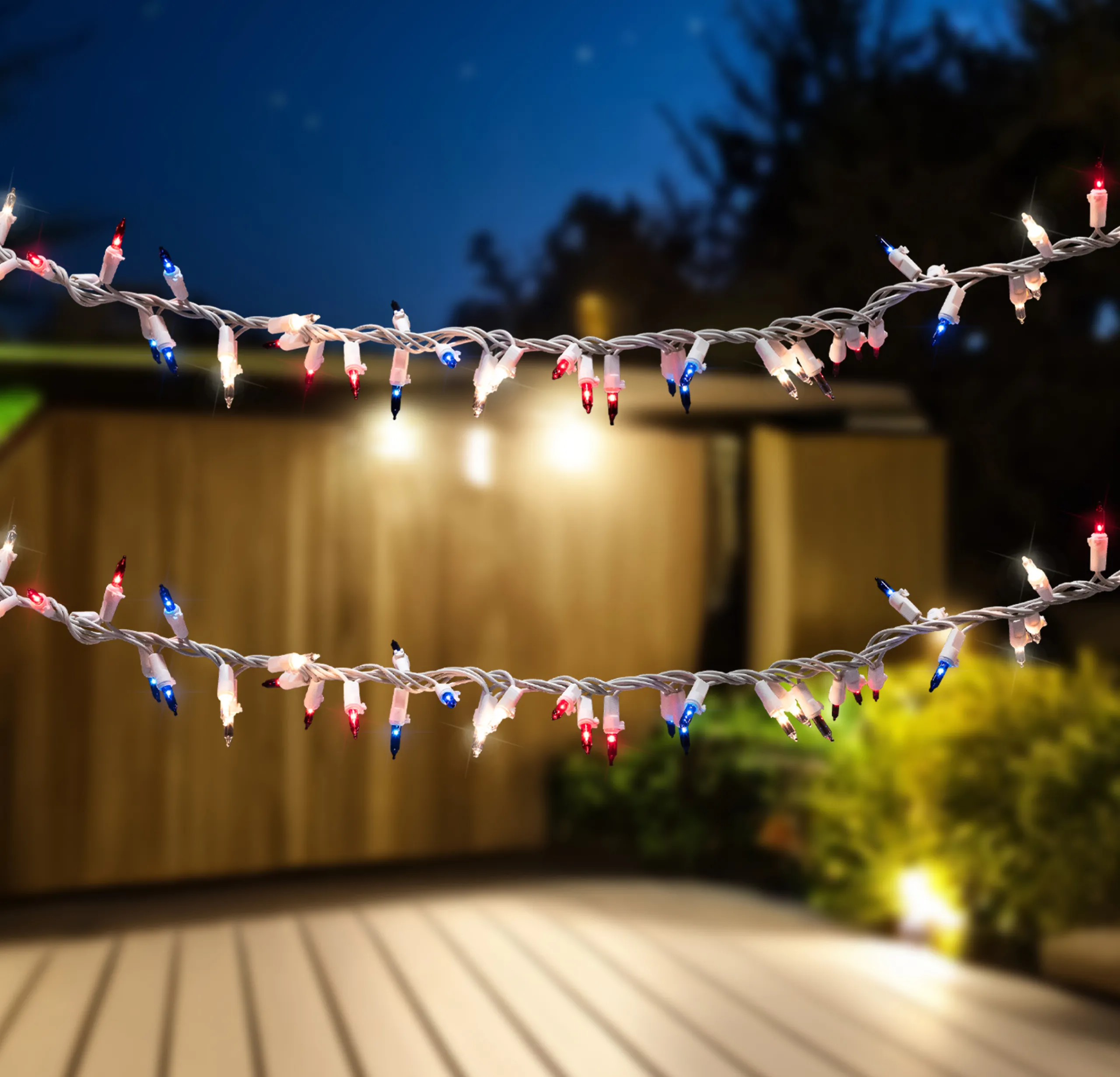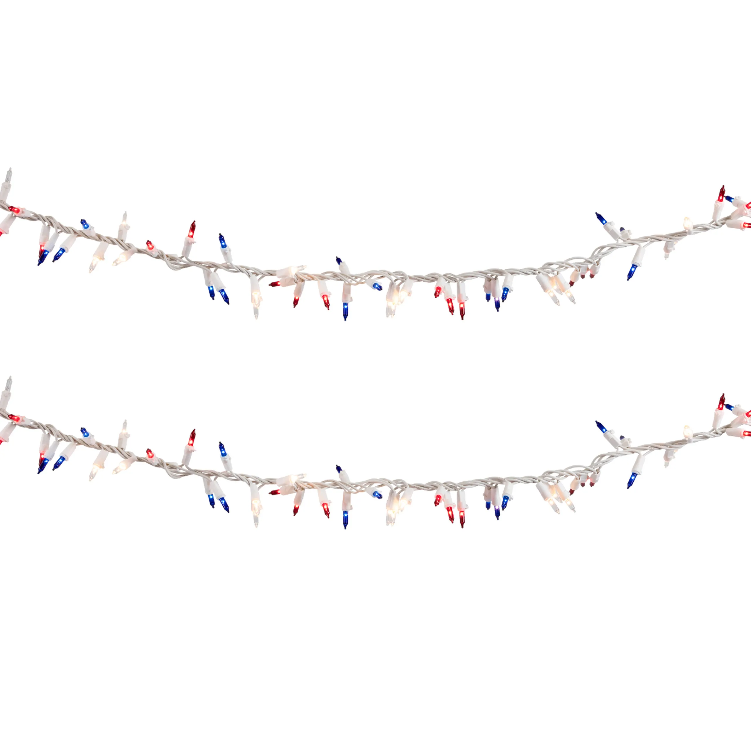 Northlight 105-Count Red, Clear And Blue Patriotic Mini Light Garland, 5.6′ White Wire