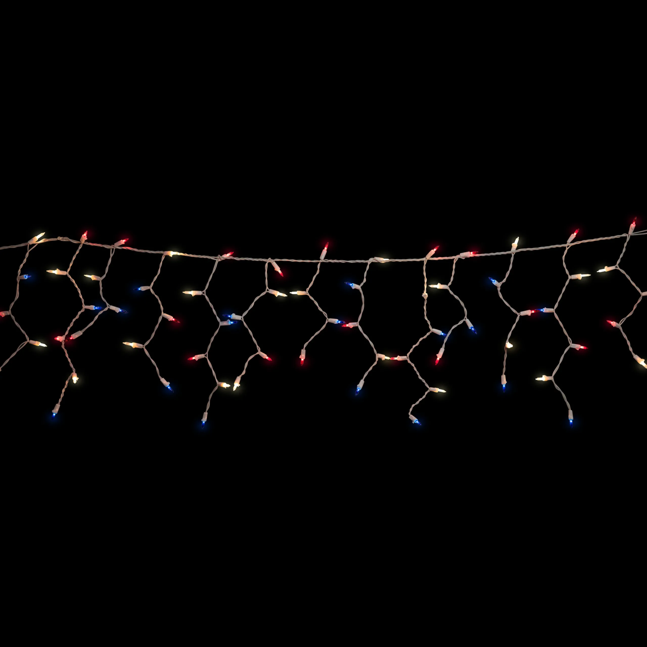 Illuminate Your Festive Occasions With The Captivating Charm Of Our Red, Clear And Blue Mini Icicle Lights! These Enchanting Lights With A Pristine White Wire, Will Infuse Your Celebrations With A Sparkling And Patriotic Spirit. Perfect For Christmas, 4Th Of July, Memorial Day, And Any Special Event, These Mini Icicle Lights Bring A Burst Of Vibrant Colors To Your Decorations. Whether You’Re Adorning Your Tree, Decking The Halls, Or Creating A Dazzling Outdoor Display, These Lights Will Create A Magical Ambiance. Let The Shimmering Brilliance Of These Icicle Lights Turn Your Festivities Into Cherished Memories That Will Be Treasured For Years To Come.