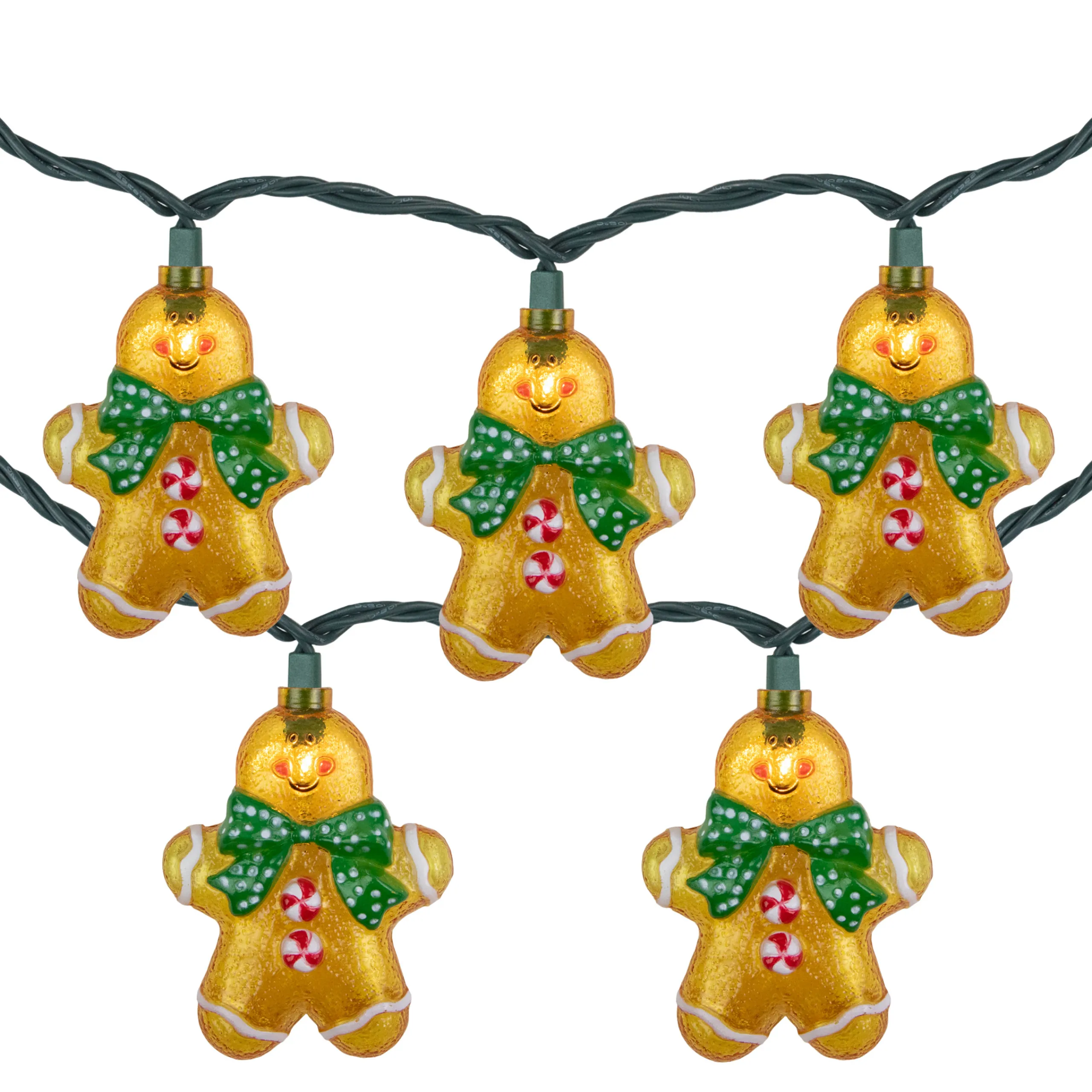 Northlight 10Ct Gingerbread Man Christmas Lights, Clear Lights, Green Wire