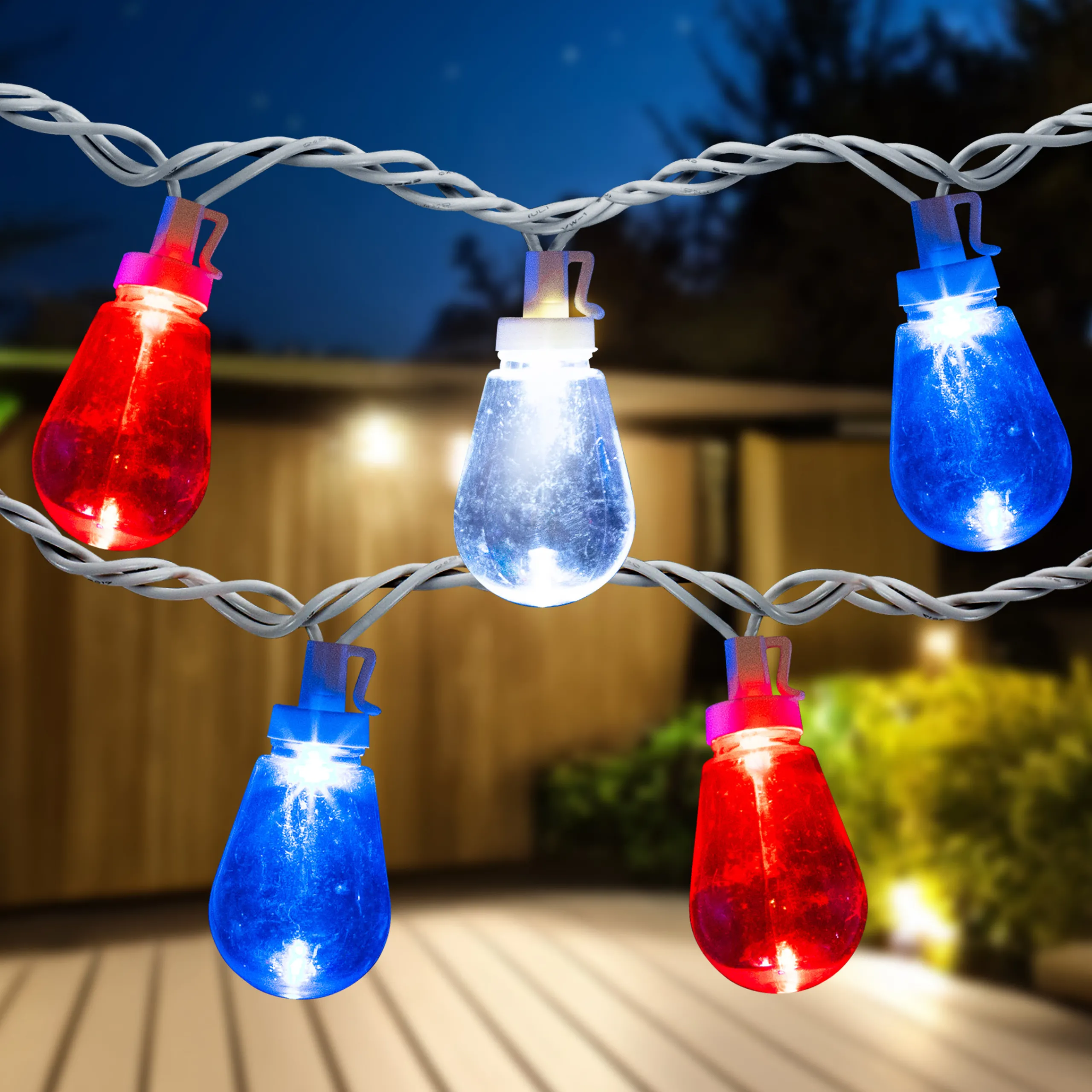 Northlight 10Ct Red, White And Blue Led Edison Style Lights, 9Ft White Wire