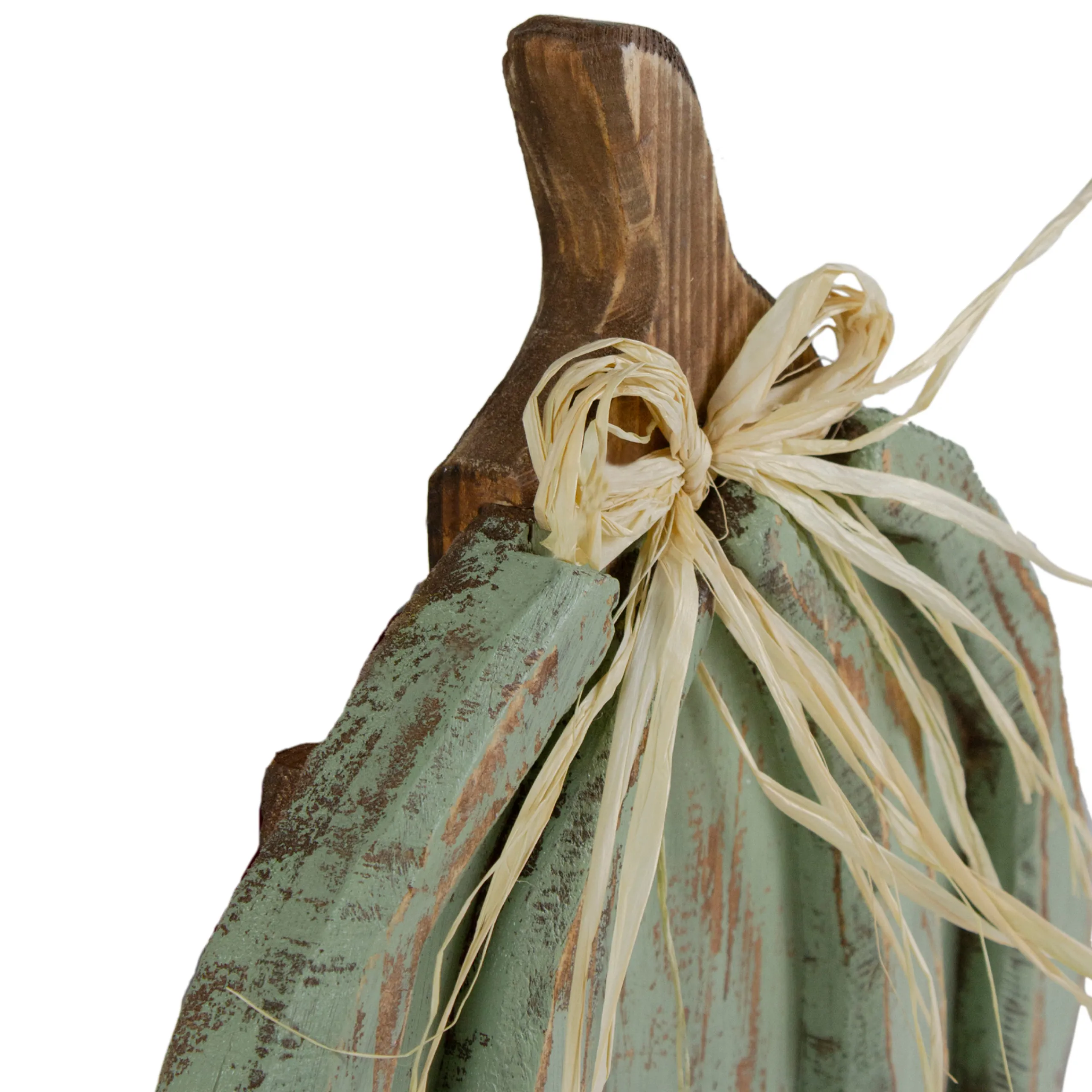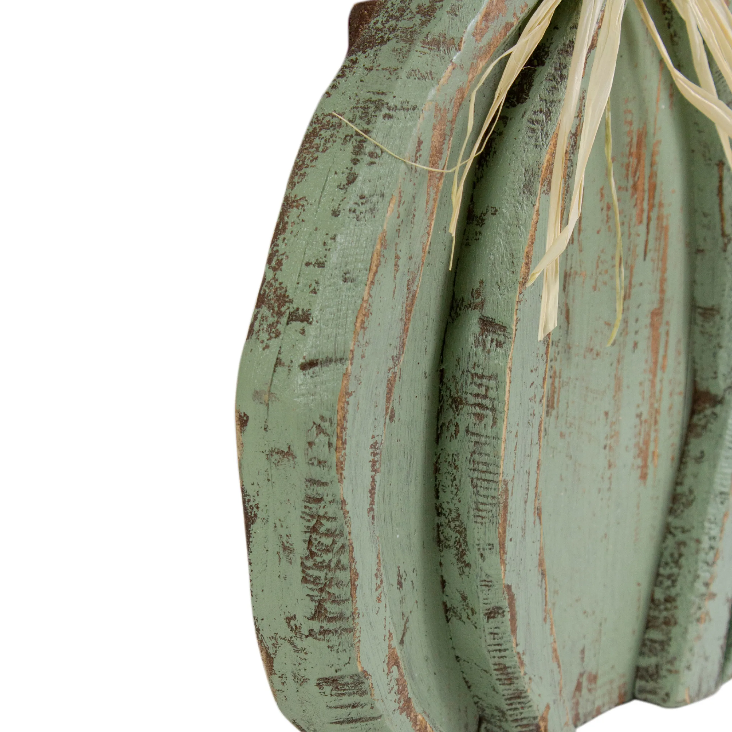 Northlight 12″ Green Weathered Fall Harvest Wooden Pumpkin Table Decoration