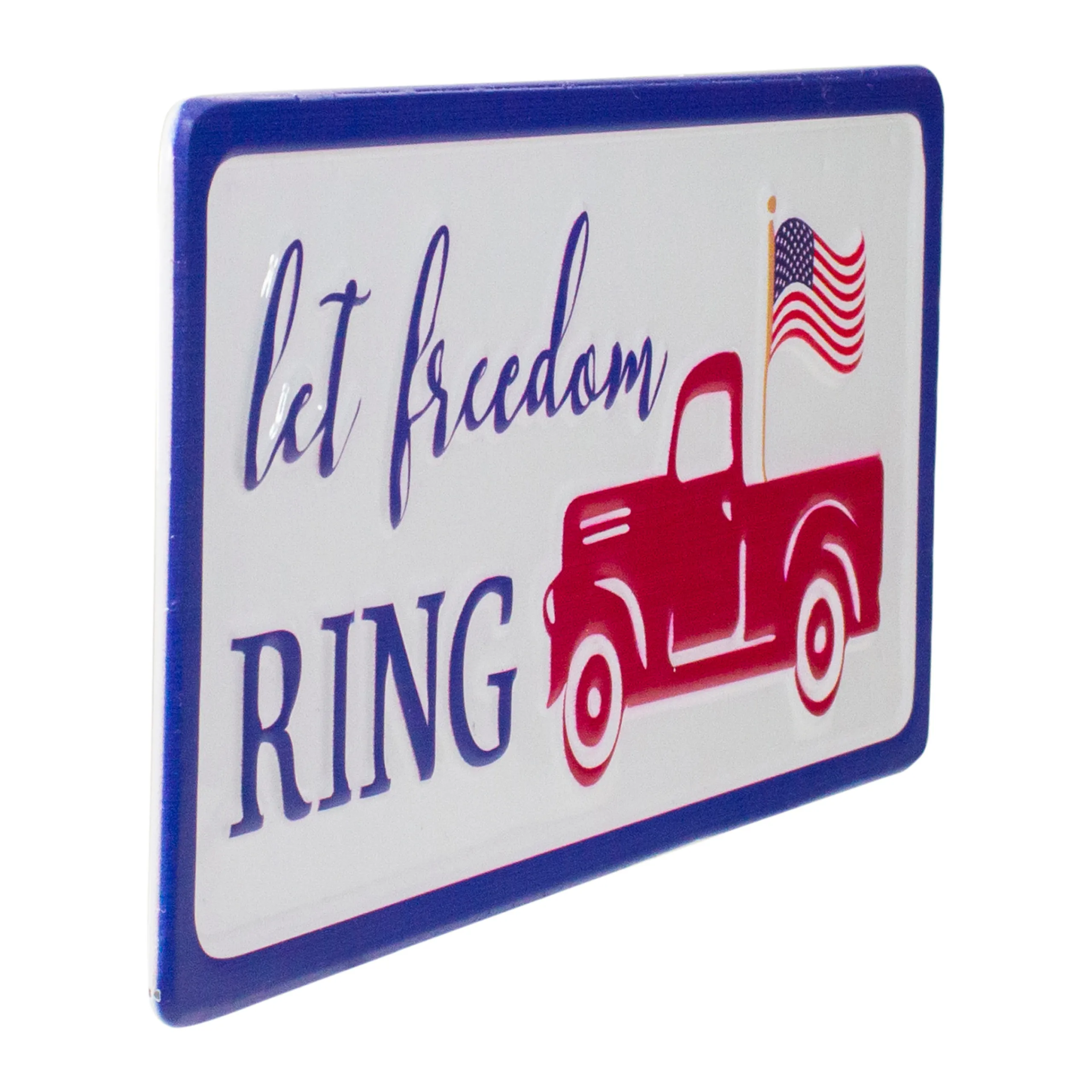 Show Off Your Patriotic Style This Season With This “Let Freedom Ring” Wall Plaque. Featuring An American Flag In A Red Pickup Truck, This Metal Wall Plaque Will Fit Perfectly Into Your Holiday Decor. It Also Makes A Perfect Gift For Your Family And Friends.
