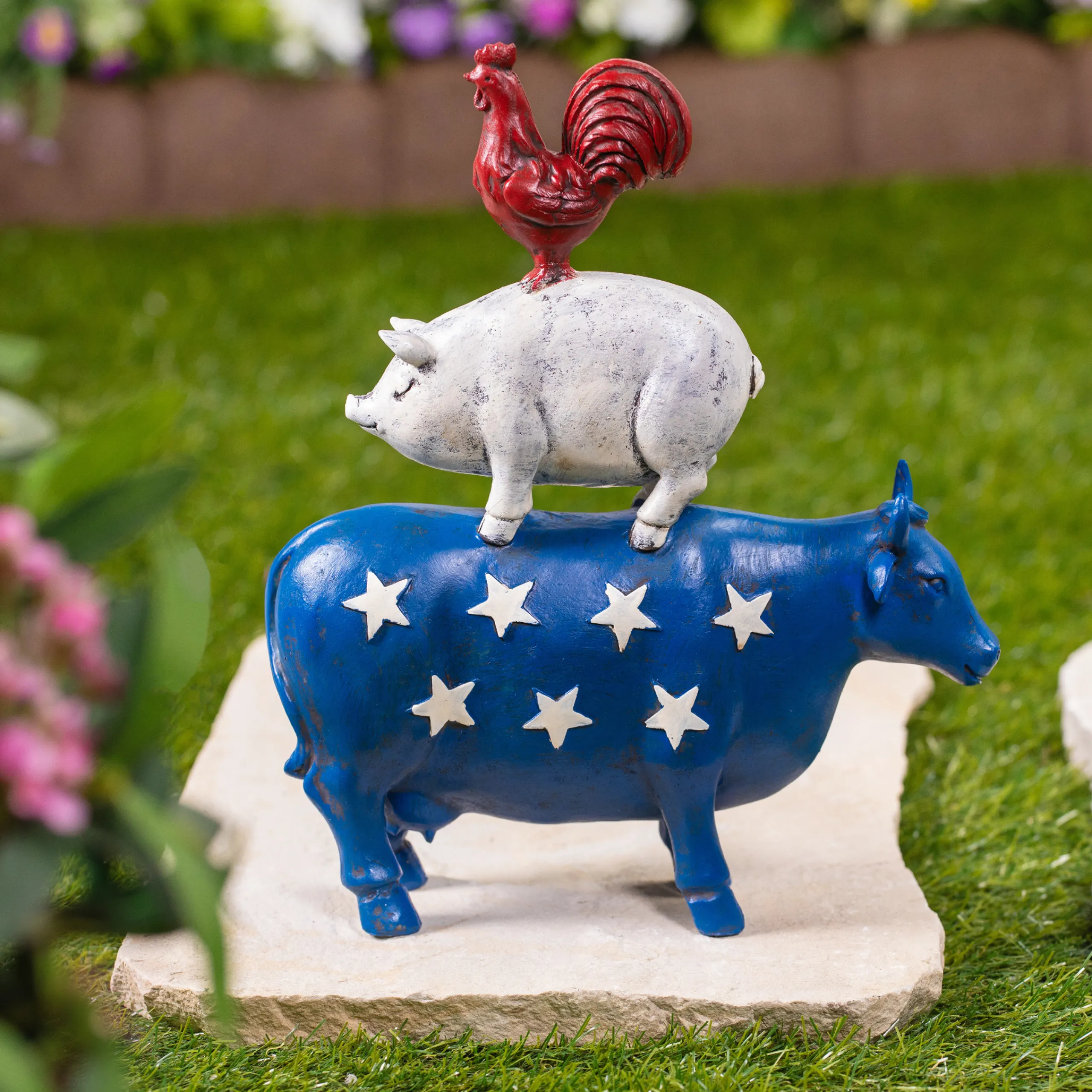 Add Some Whimsy And Flair To Your Garden With This Charming Patriotic Barnyard Animal Garden Statue. A Wonderfully Rustic Way To Pay Tribute To Our Nation’s Flag.