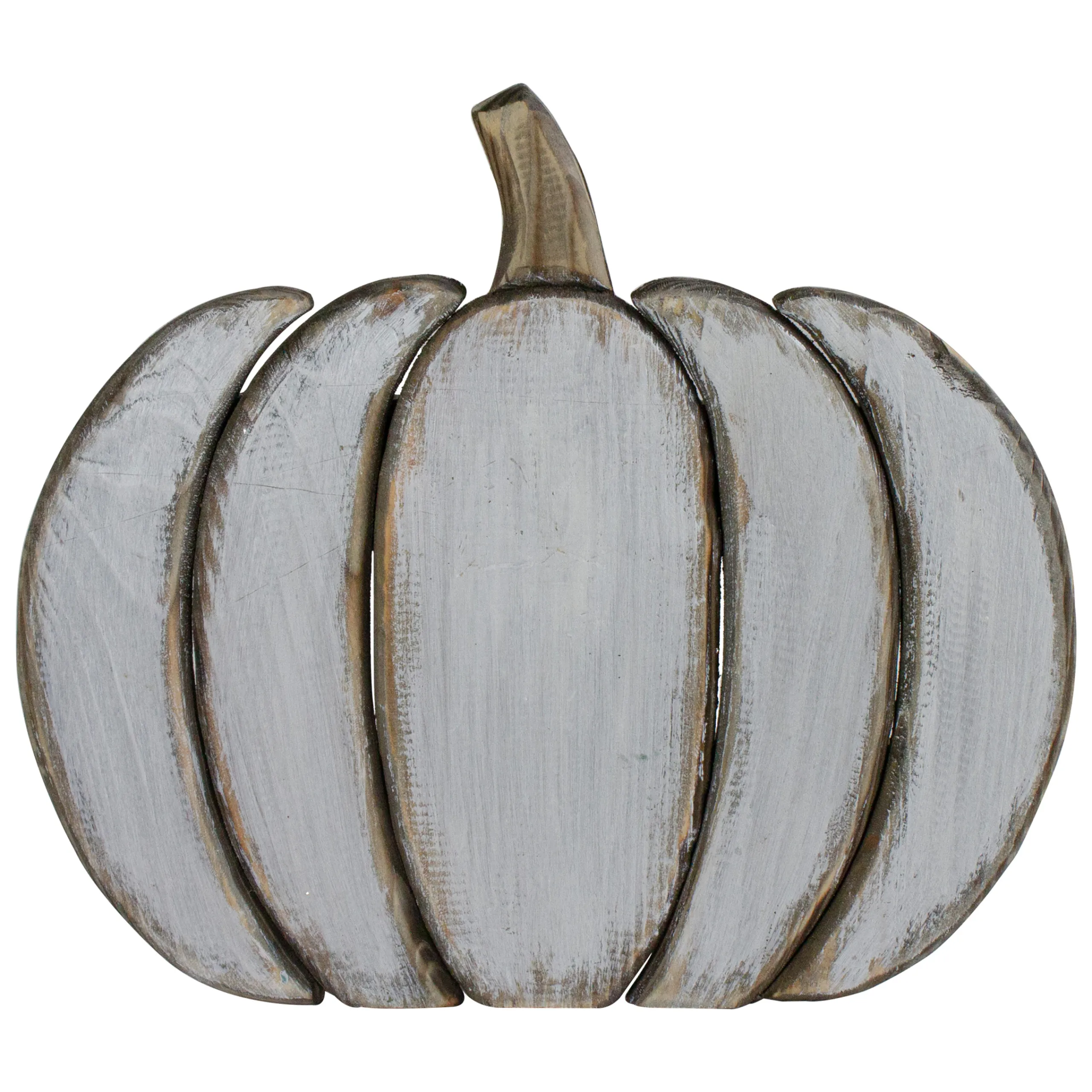 Northlight 13.75 White Wooden Pumpkin Fall Harvest Decoration
