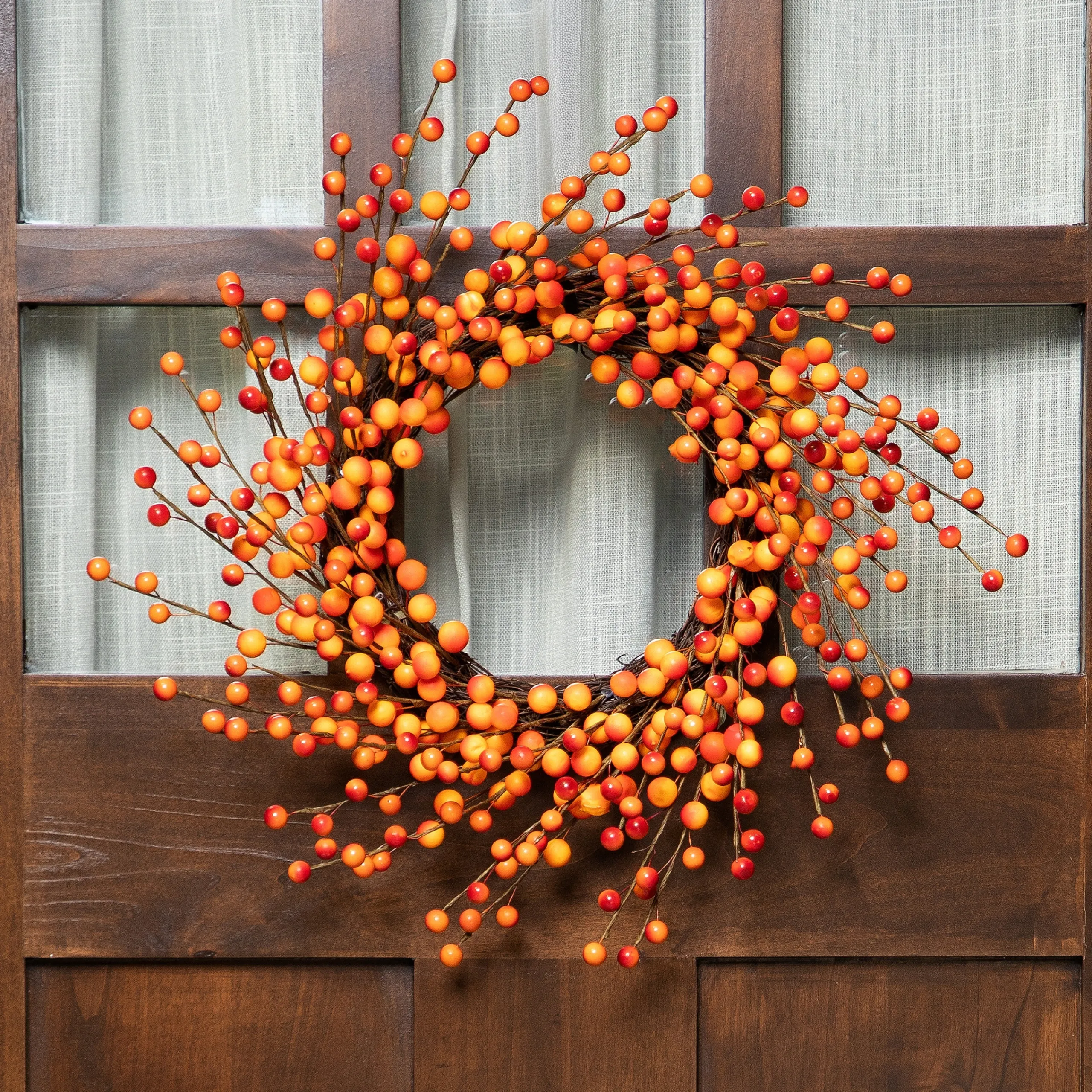 Capture The Feeling Of A Crisp Fall Day With This Beautiful Autumn Wreath. It Features Red And Orange Berries With A Brown Twig Backing That Will Give A Pop Of Color To Your Home Decor. Display This Vibrant Wreath On Doors, Walls, Windows, Or Over Your Mantle.