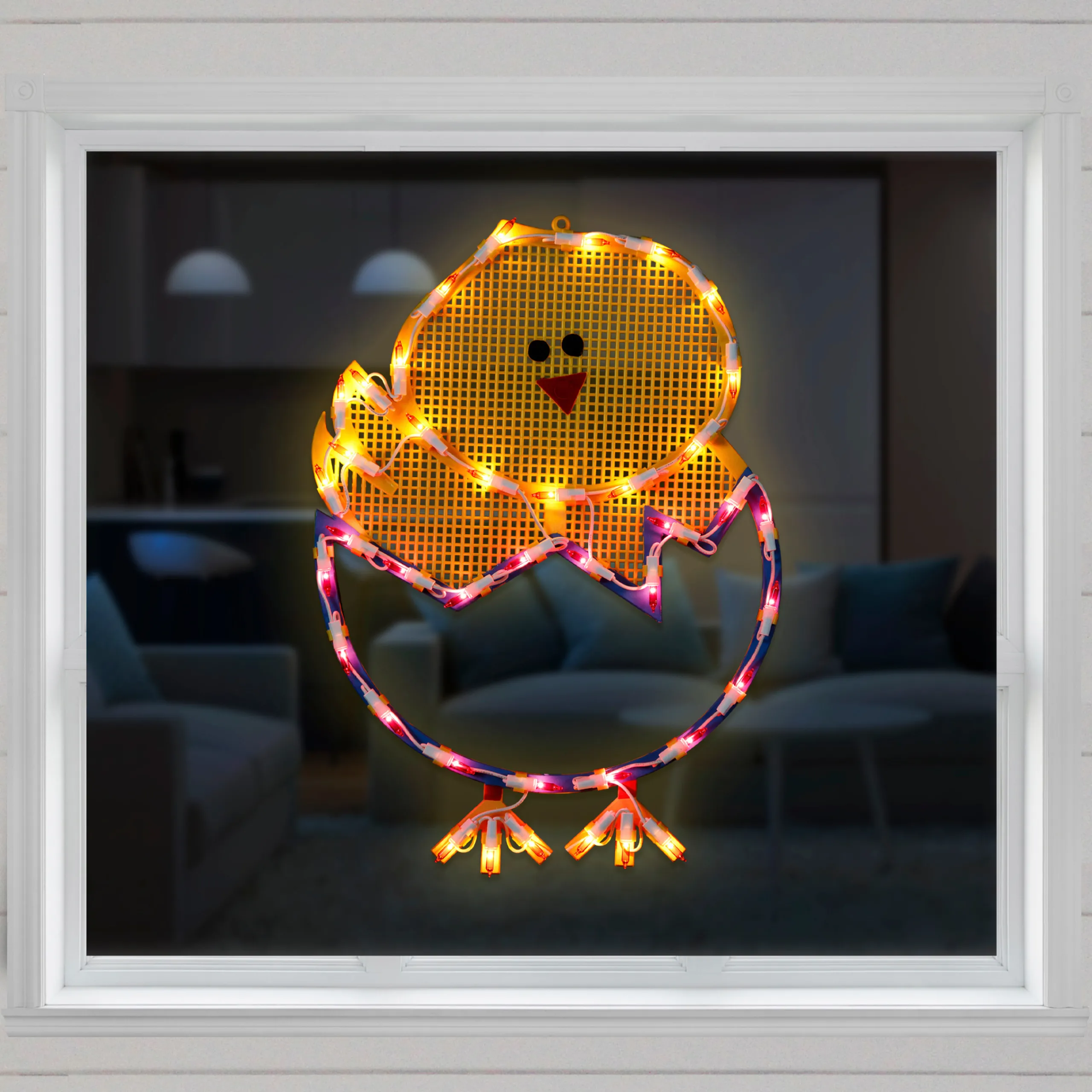 This Enchanting Decoration Brings The Spirit Of Spring To Life, Showcasing A Charming Chick Emerging From An Egg. This Silhouette Features Vibrant Pink And Orange Lights That Radiate A Warm And Inviting Glow, Making This Decoration Perfect For Displaying In Your Home Or Business. Whether Placed In A Window Or Hung On A Wall, This Adorable Silhouette Will Add A Festive Touch To Your Easter Decor.