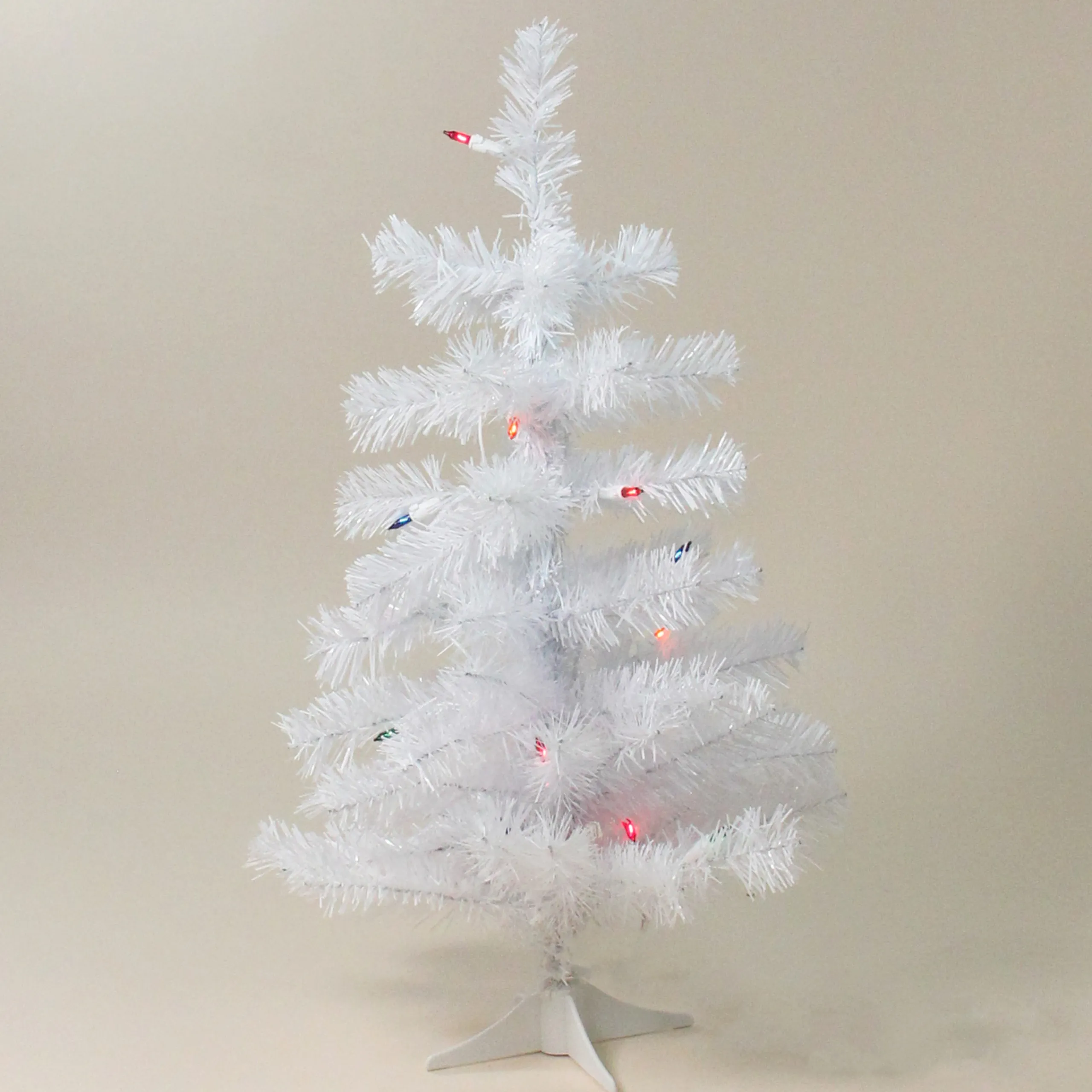 Northlight 2.5 Feet Tall And Smaller>2′ Pre-Lit Slim White Tinsel Artificial Christmas Tree – Multi Lights