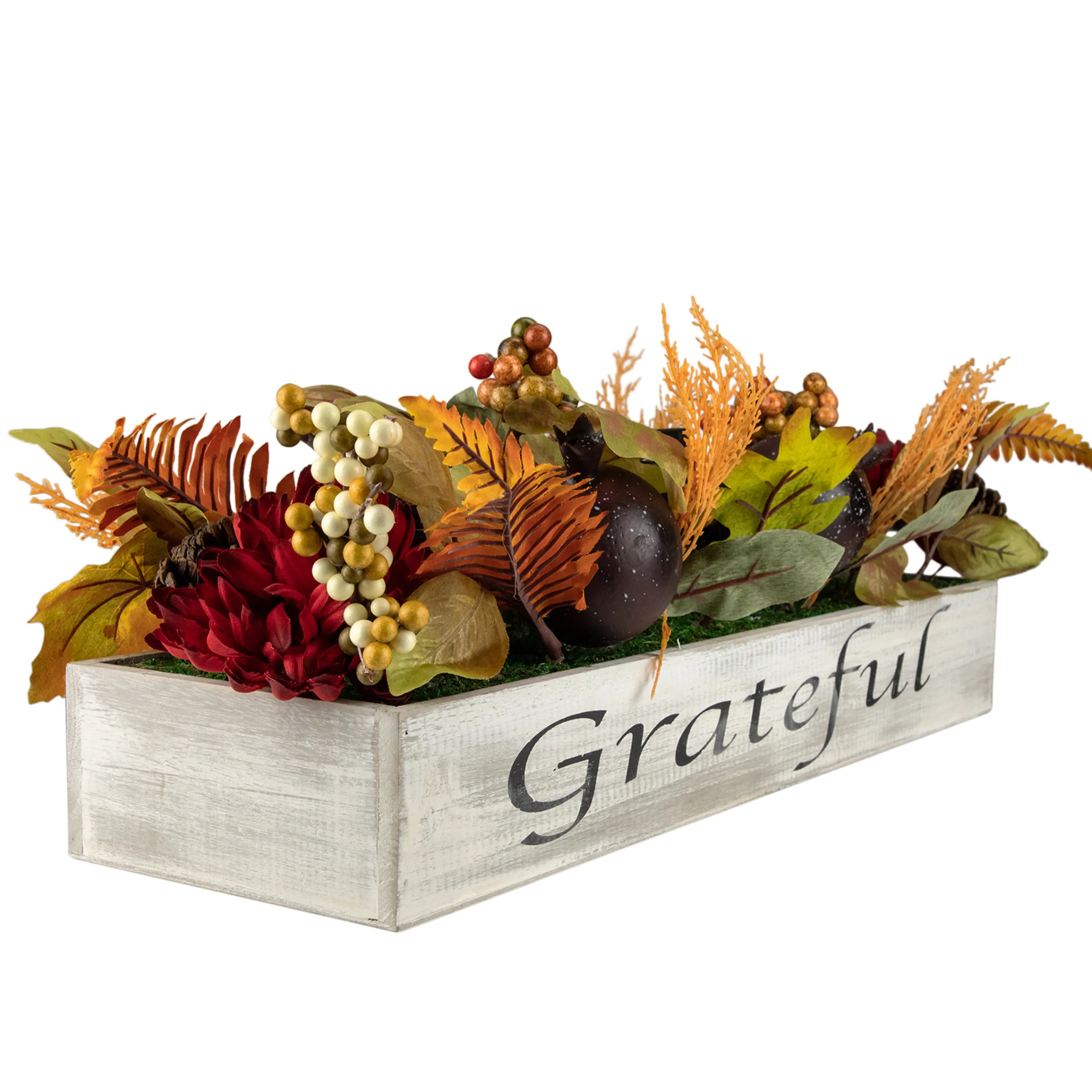 Autumn Harvest Floral Wooden Box Thanksgiving Candle Holder Centerpiece