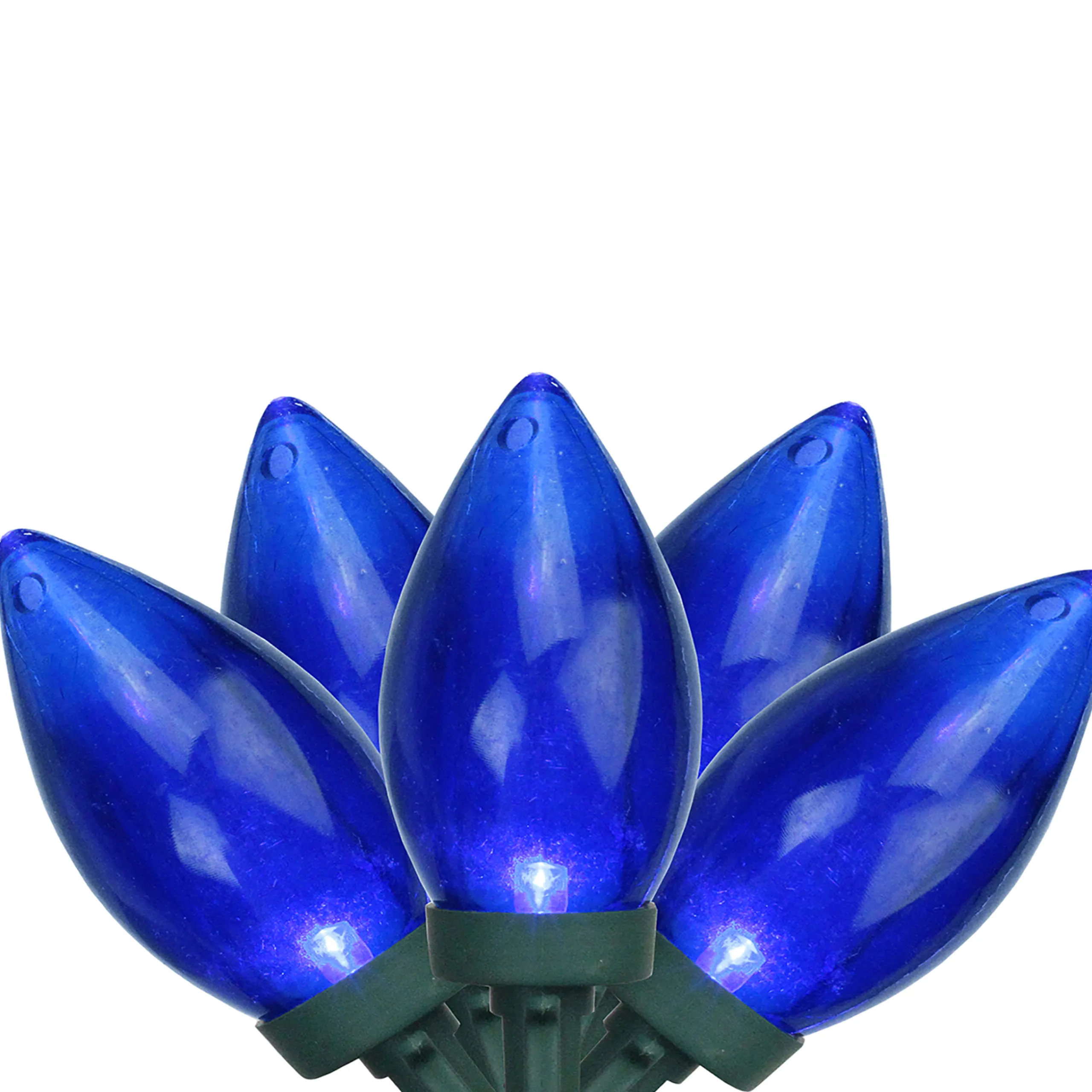 Illuminate Your Holiday Season With This Retro-Style Set Of Blue Led C9 Christmas Lights! These Festive Lights Feature A Green Wire That Blends Seamlessly With Your Trees And Garlands. Equipped With A Clamp On The Base Of Each Bulb, These Lights Stay Securely In Place, Adding A Touch Of Magic To Your Home. With End-To-End Connectors, You Can Easily Connect Multiple Sets To Create A Stunning Display. Plus, The Lights Come With Replacement Bulbs And Spare Fuses, Ensuring That Your Holiday Season Stays Merry And Bright. Get Ready To Spread Some Holiday Cheer With This Set Of Blue Led C9 Lights!