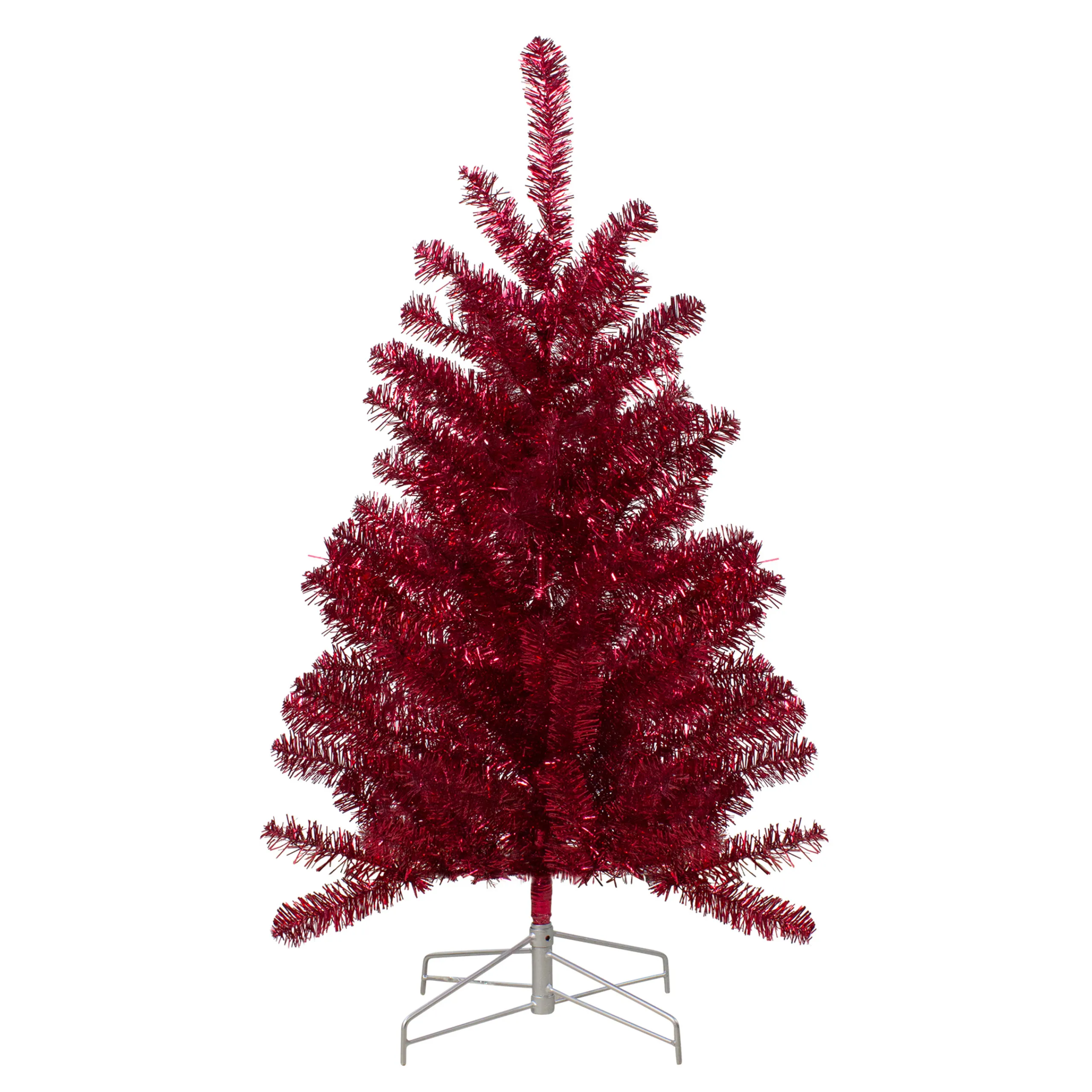 Northlight 3 And 3.5 Feet Tall>3′ Metallic Crimson Tinsel Artificial Christmas Tree – Unlit
