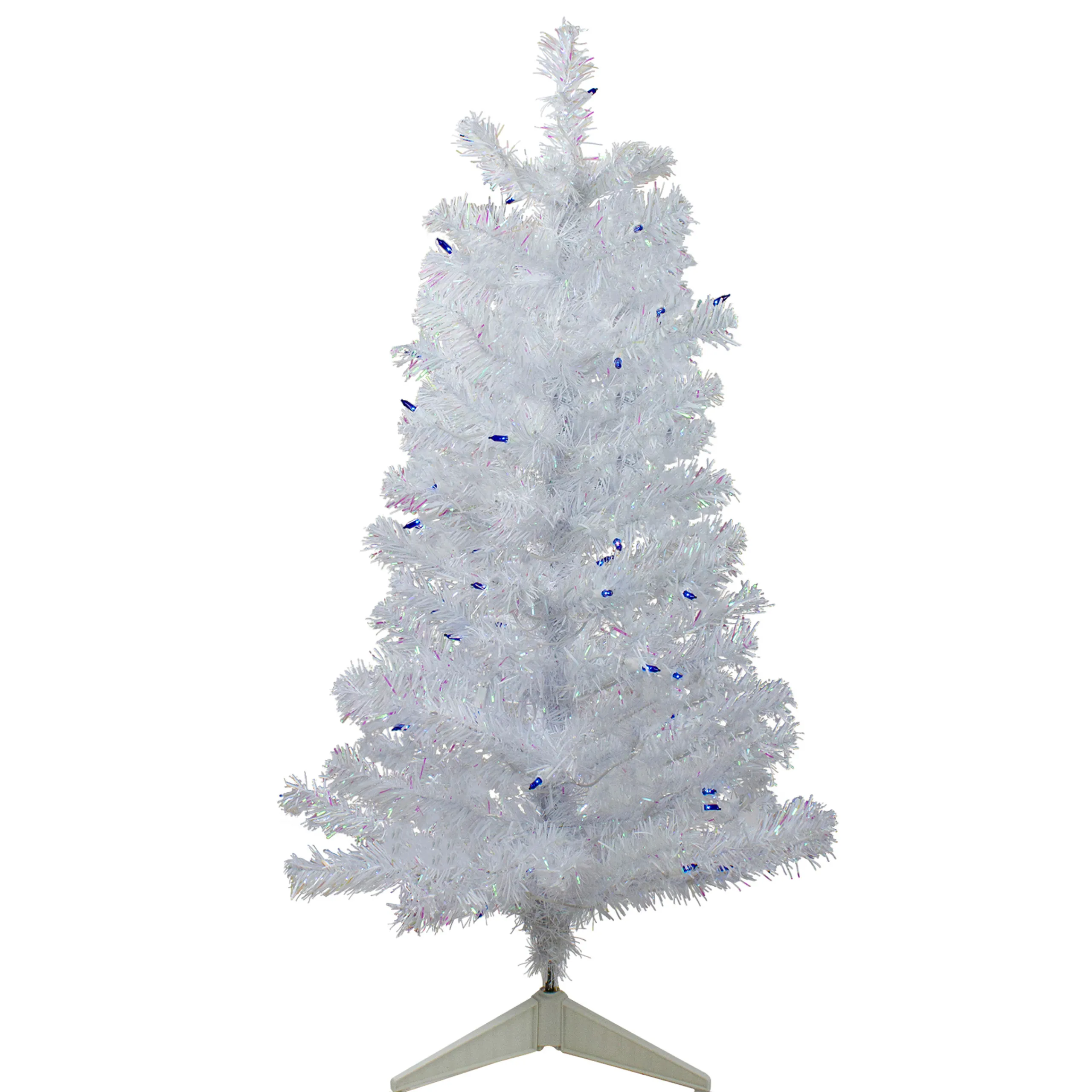 Northlight 3 And 3.5 Feet Tall>3′ Pre-Lit White Medium Pine Artificial Christmas Tree – Blue Lights