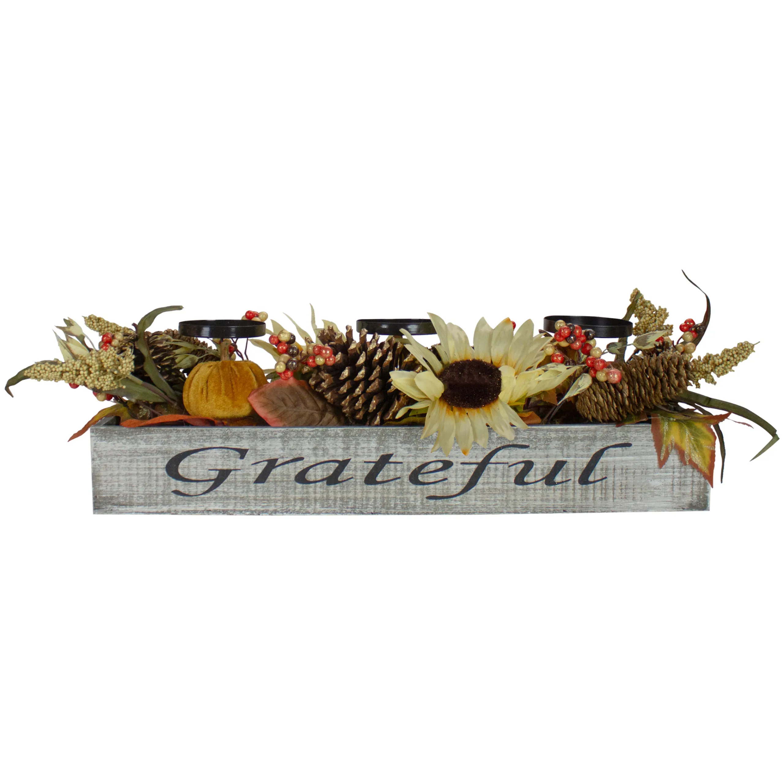 Northlight 30″ Autumn Sunflower “Grateful” Candle Holder Centerpiece