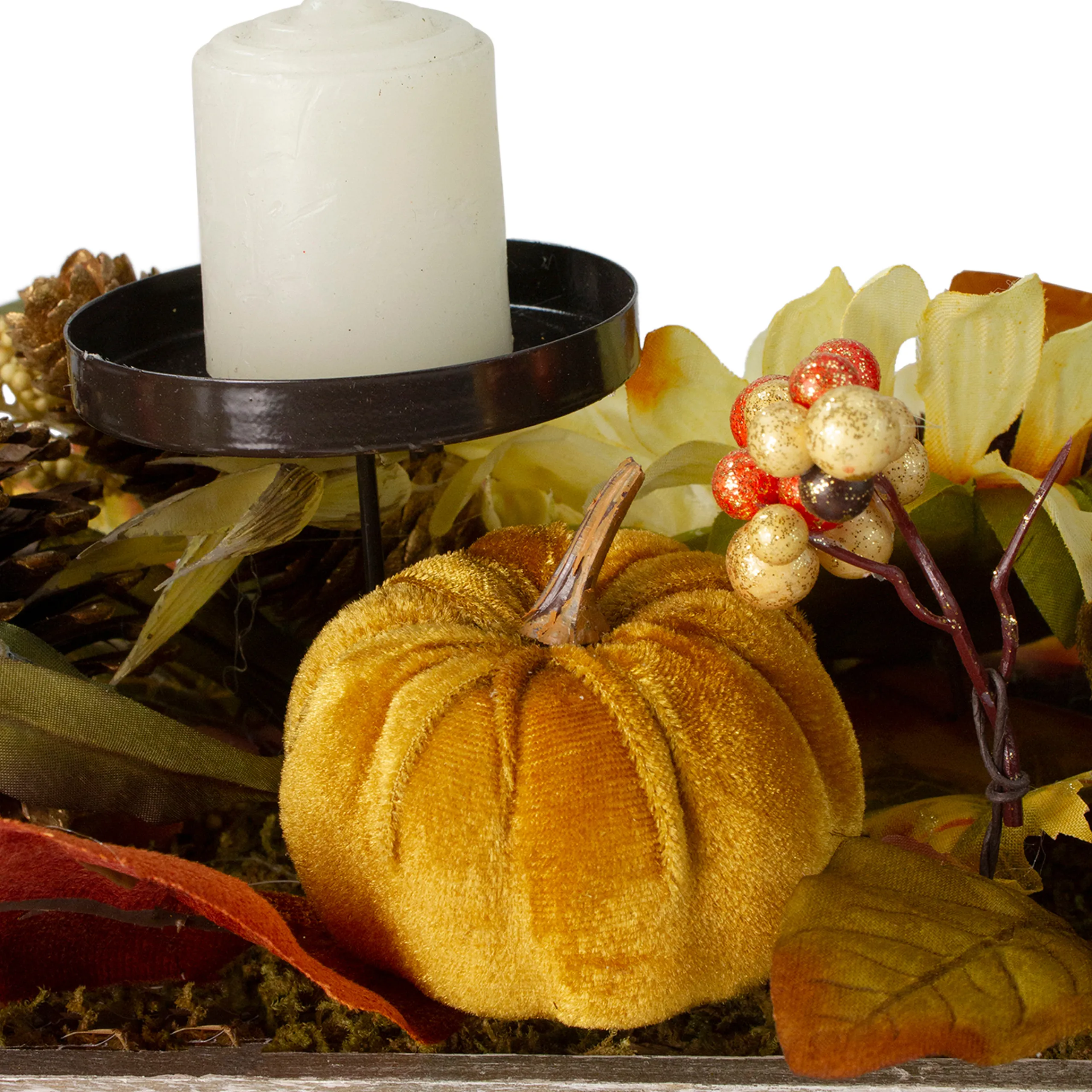 Autumn Harvest Floral Wooden Box Thanksgiving Candle Holder Centerpiece