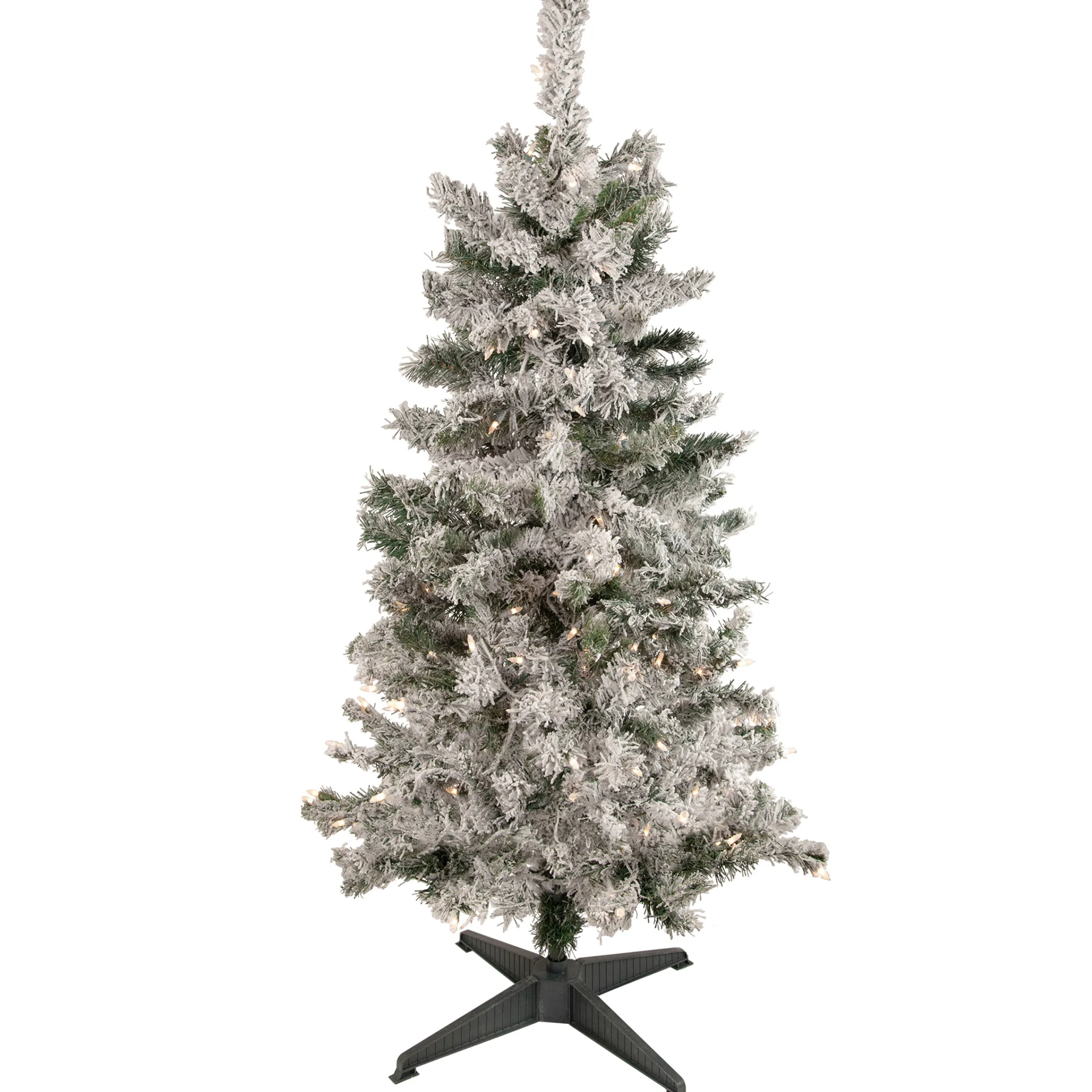 Northlight 4 And 4.5 Feet Tall>4.5′ Pre-Lit Flocked Pine Medium Artificial Christmas Tree – Clear Lights