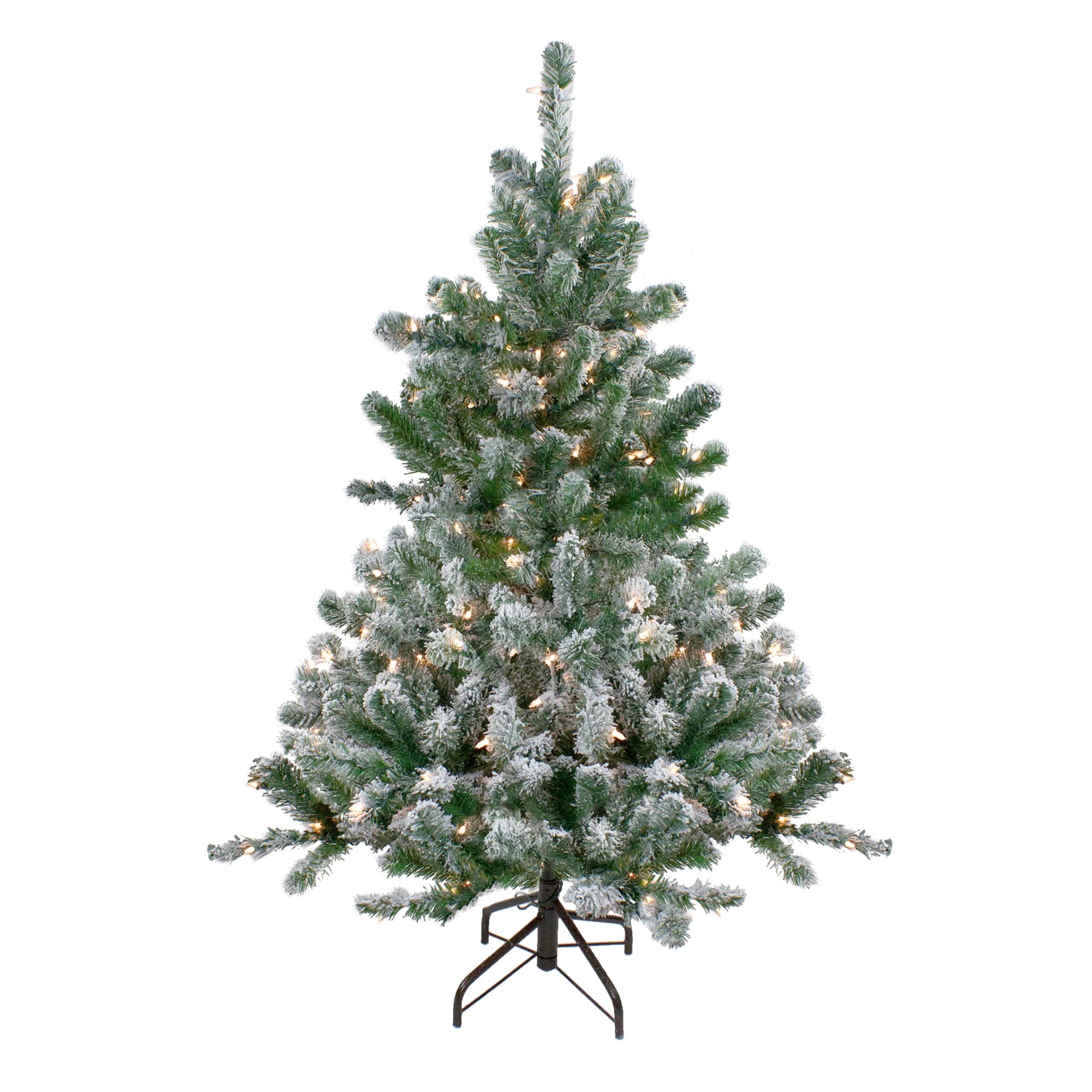 Northlight 4 And 4.5 Feet Tall>4.5′ Pre-Lit Full Flocked Natural Emerald Artificial Christmas Tree – Warm Clear Lights