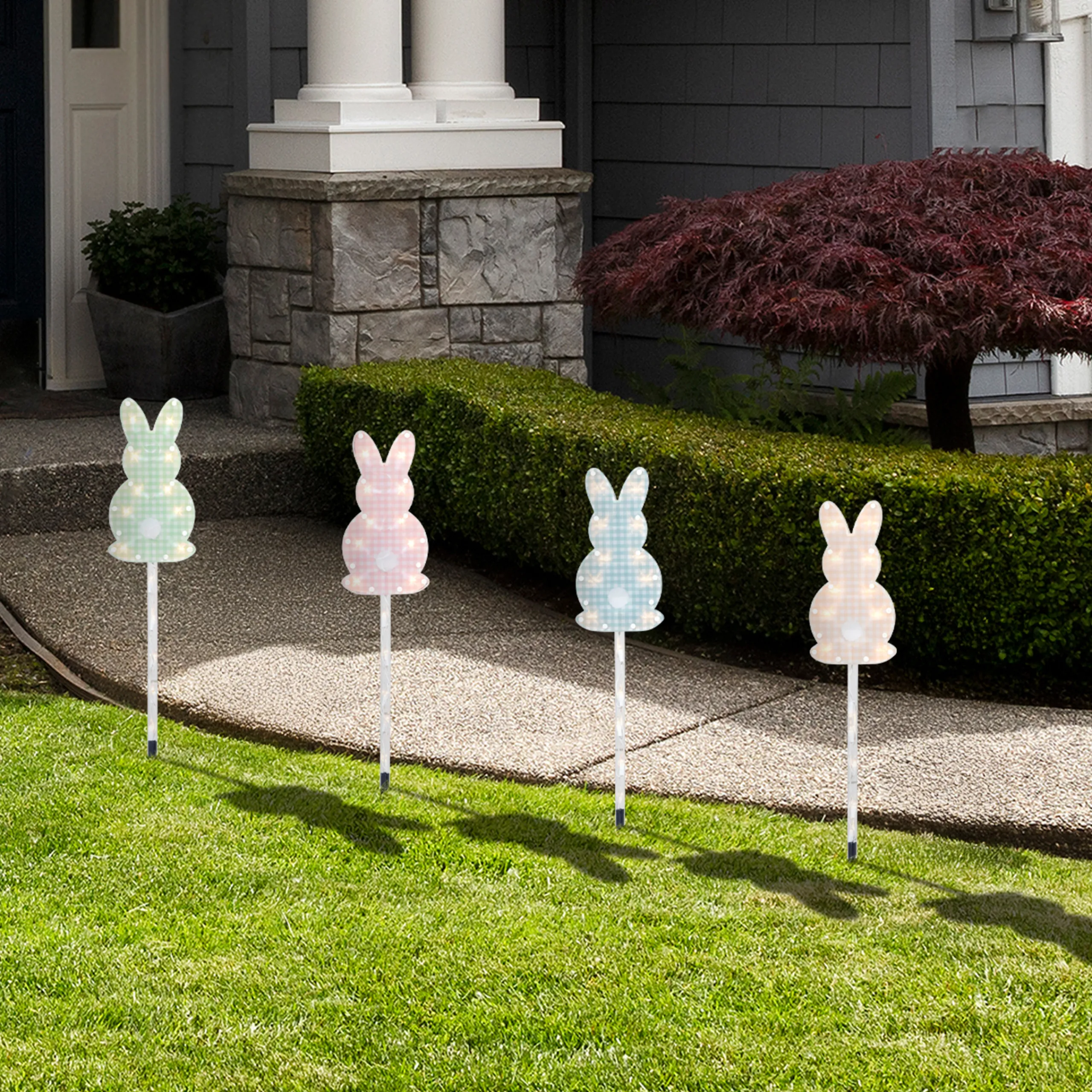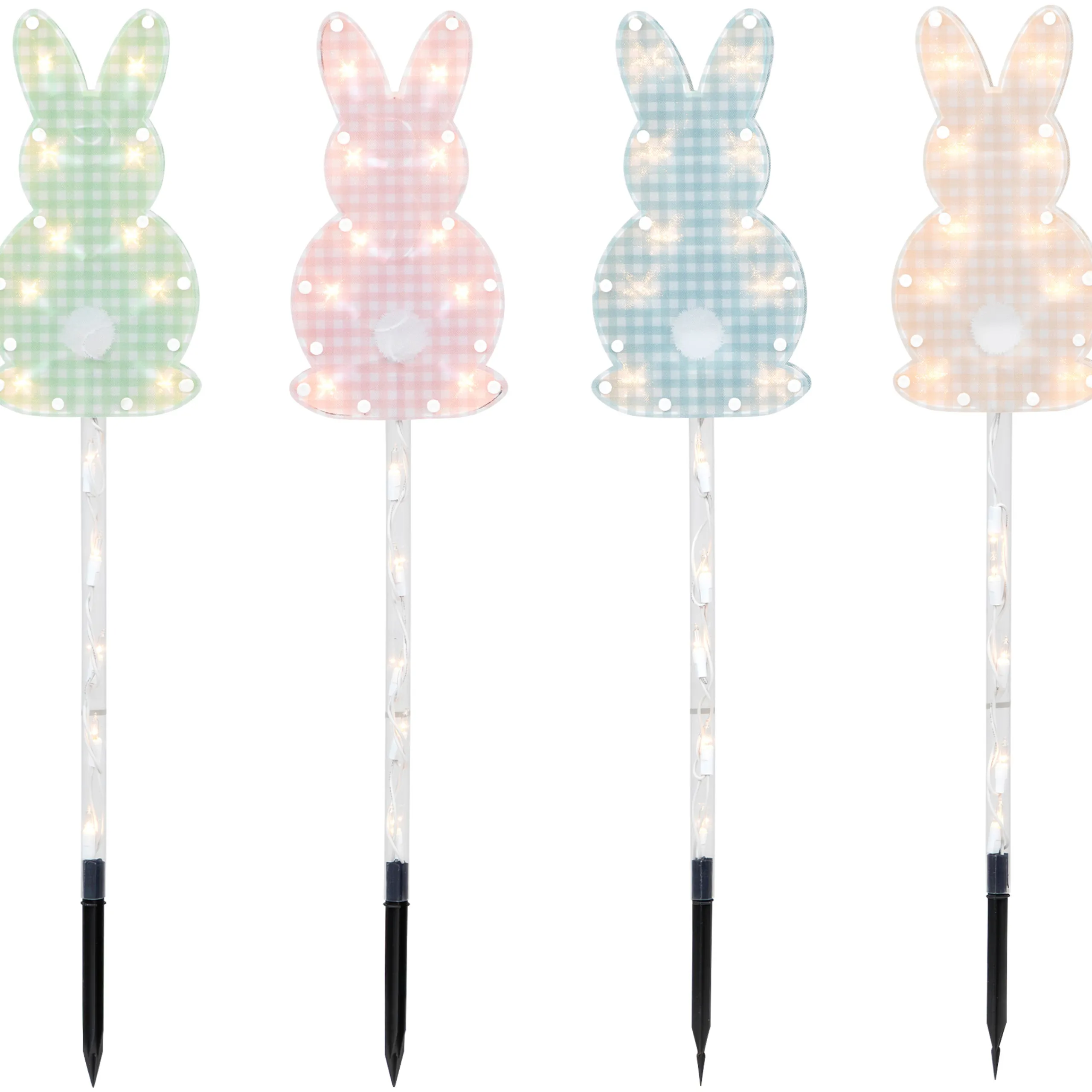 Northlight 4Ct Plaid Pastel Bunny Easter Pathway Marker Lawn Stakes, Clear Lights