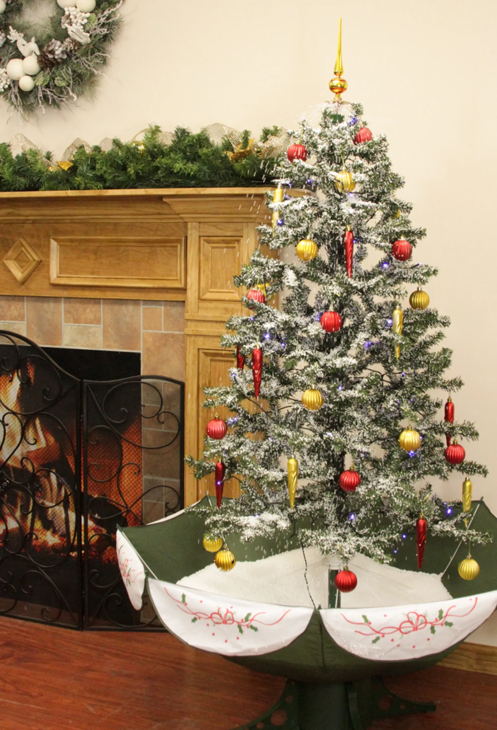Northlight 5 And 5.5 Feet Tall>5.5′ Pre-Lit Medium Musical Snowing Artificial Christmas Tree With Umbrella Base – Blue Led Lights