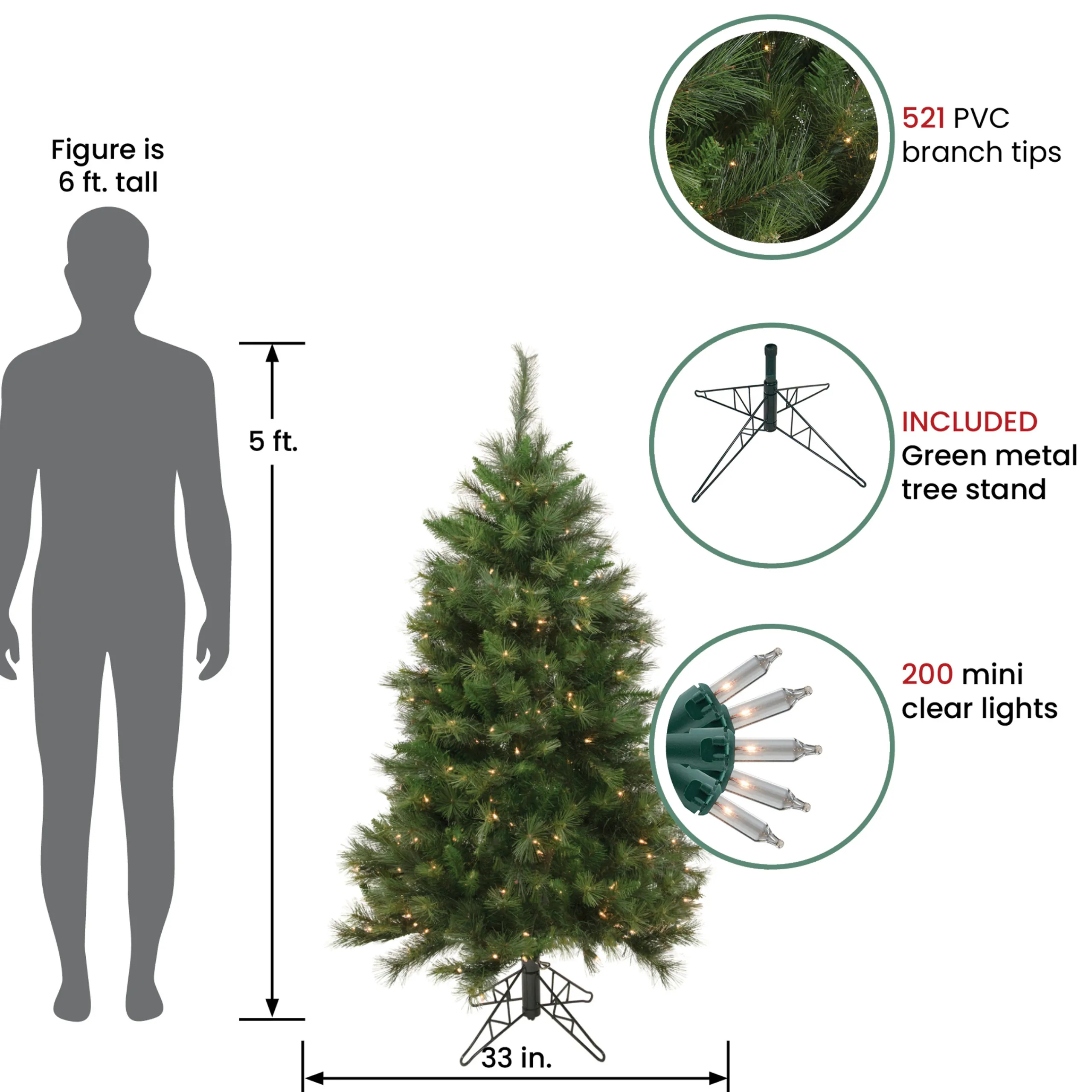 Dimensions: 5′ High (From The Base Of The Stand To The Top Of The Tree)