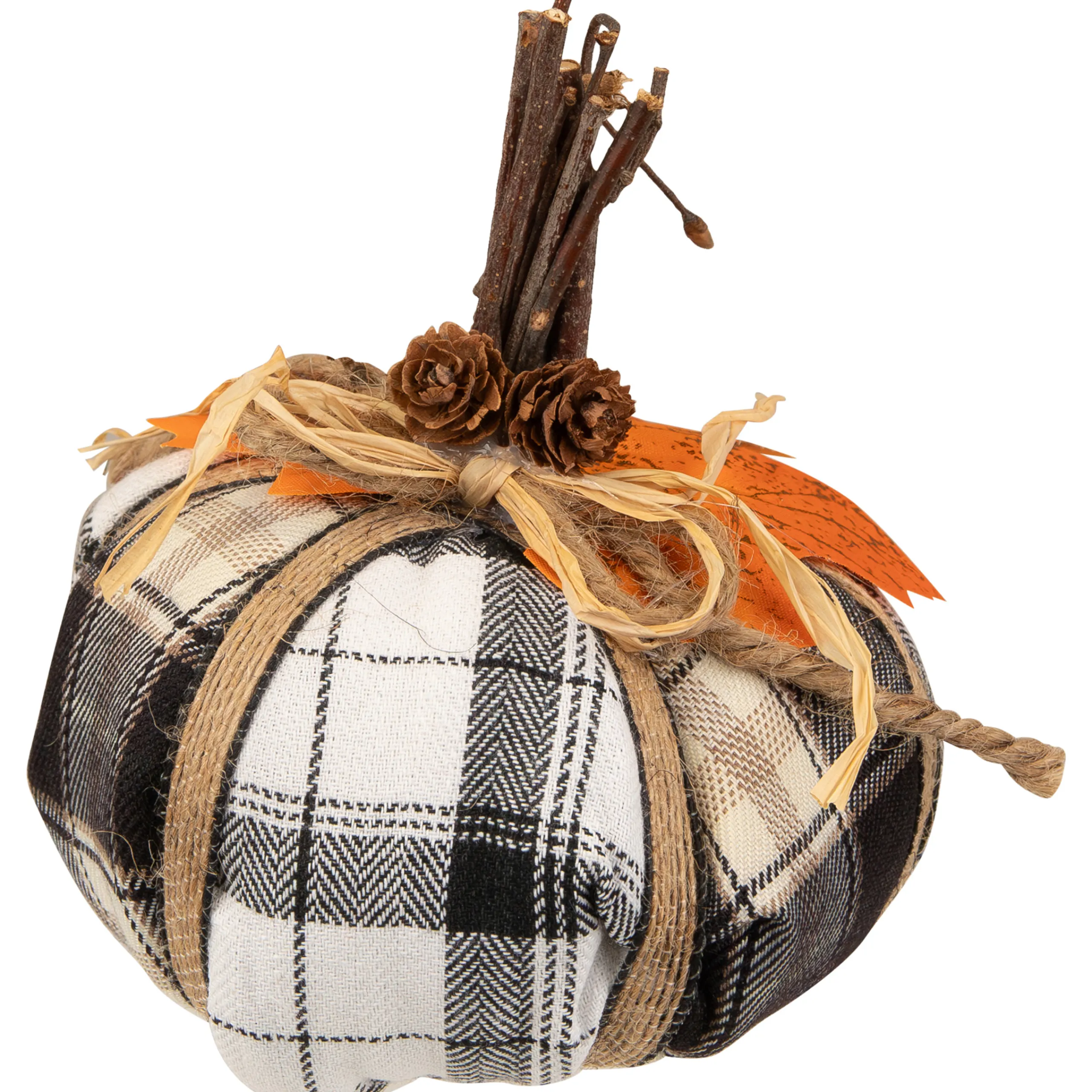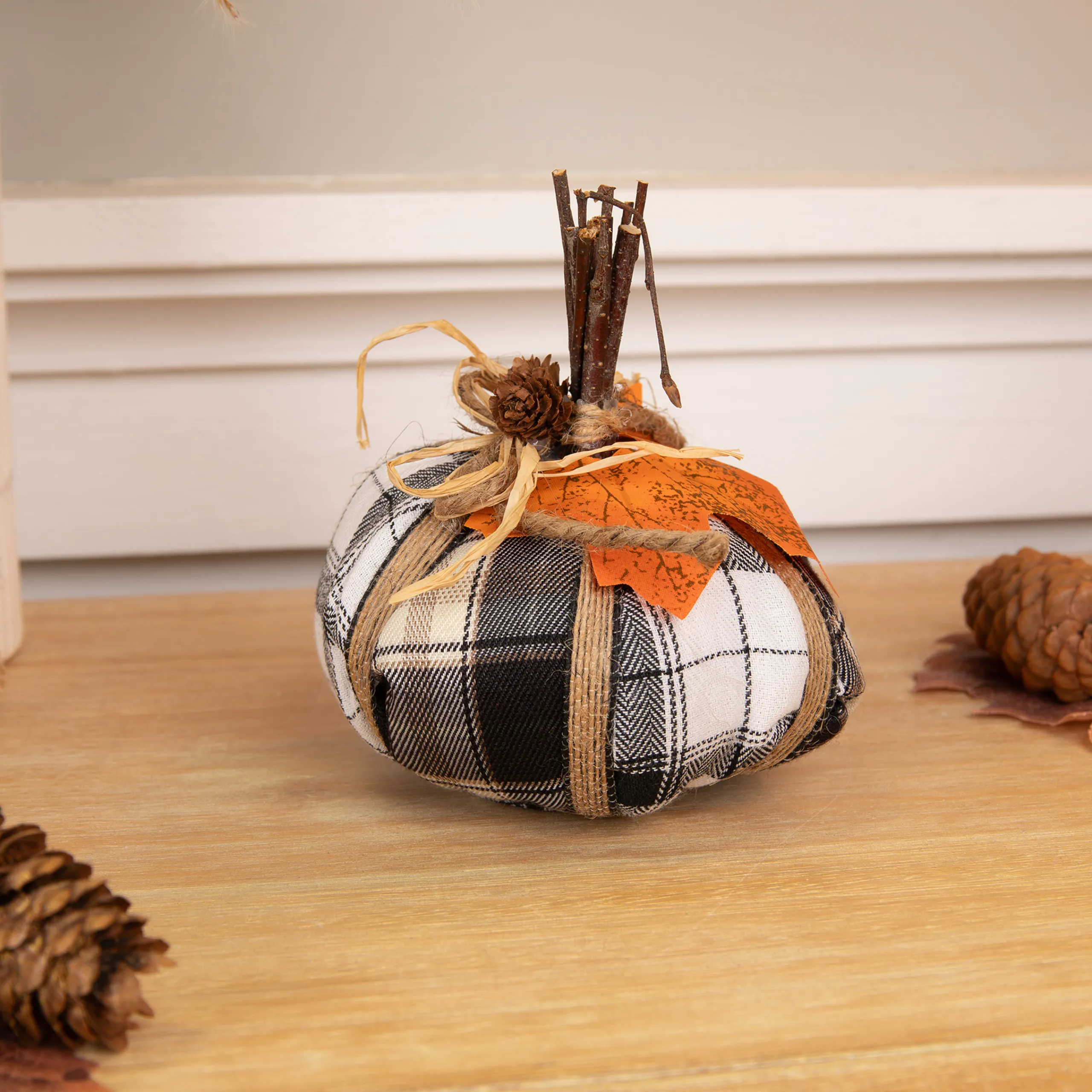 Northlight 5″ Black And White Plaid Fall Harvest Plush Pumpkin