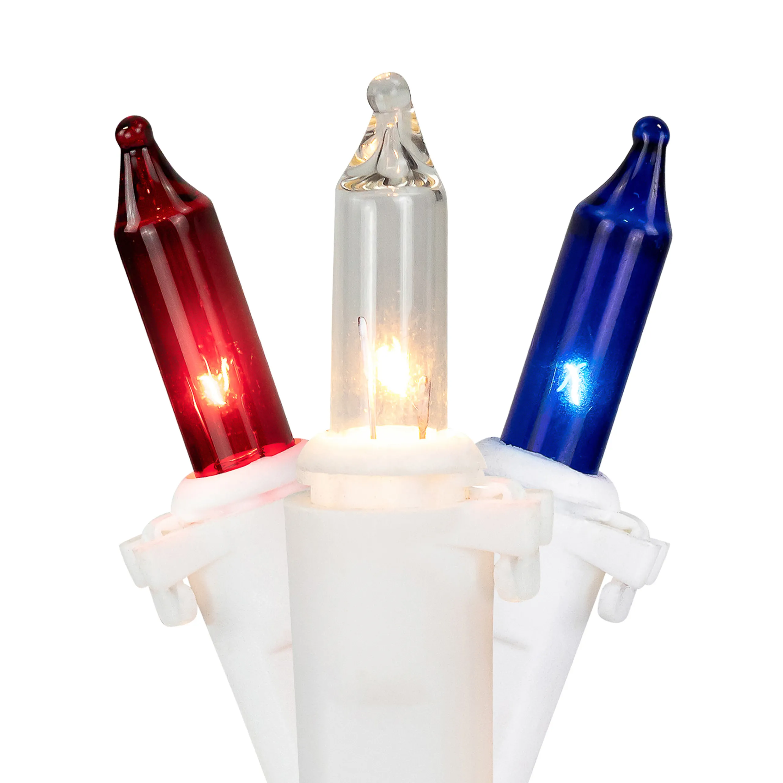 Northlight 50-Count Red, White, Blue 4Th Of July Mini Light Set, 10Ft White Wire