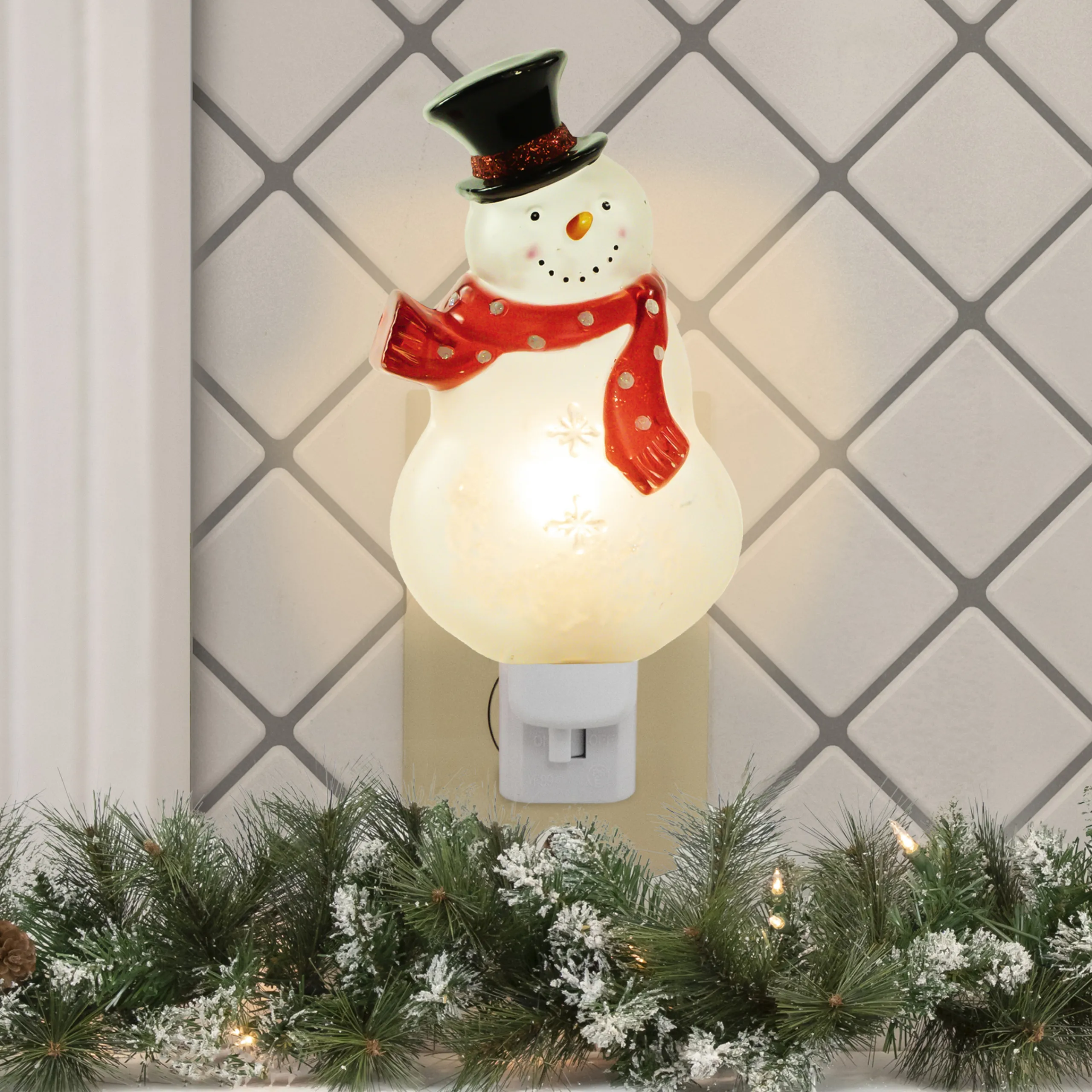 Jolly Snowman Figure Is Depicted Wearing A Red And White Polka Dot Scarf And Black Top Hat. The Adjustable Swivel Base Allows This To Fit In Any Outlet. This Night Light Will Turn Your Home Into A Wonderland This Season!