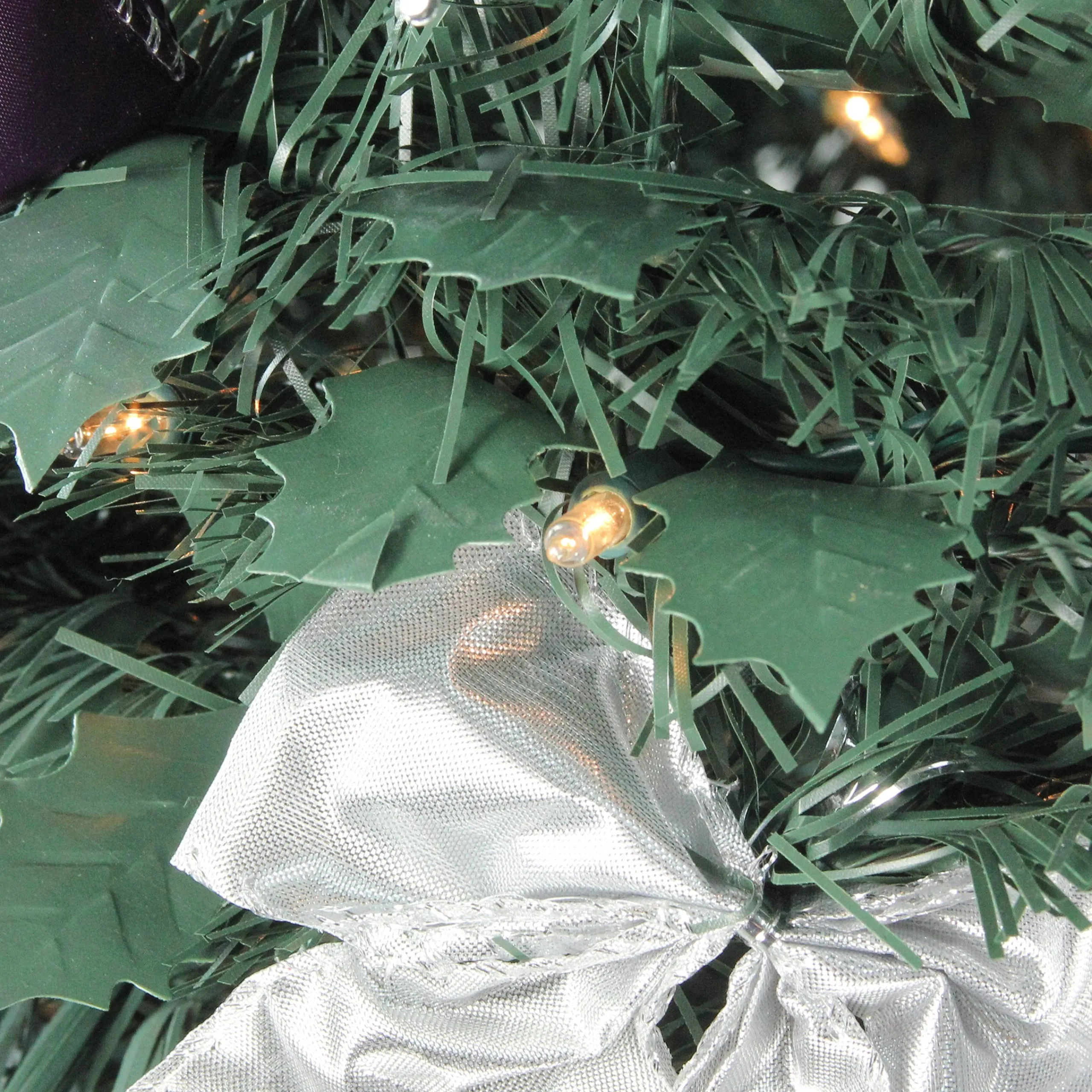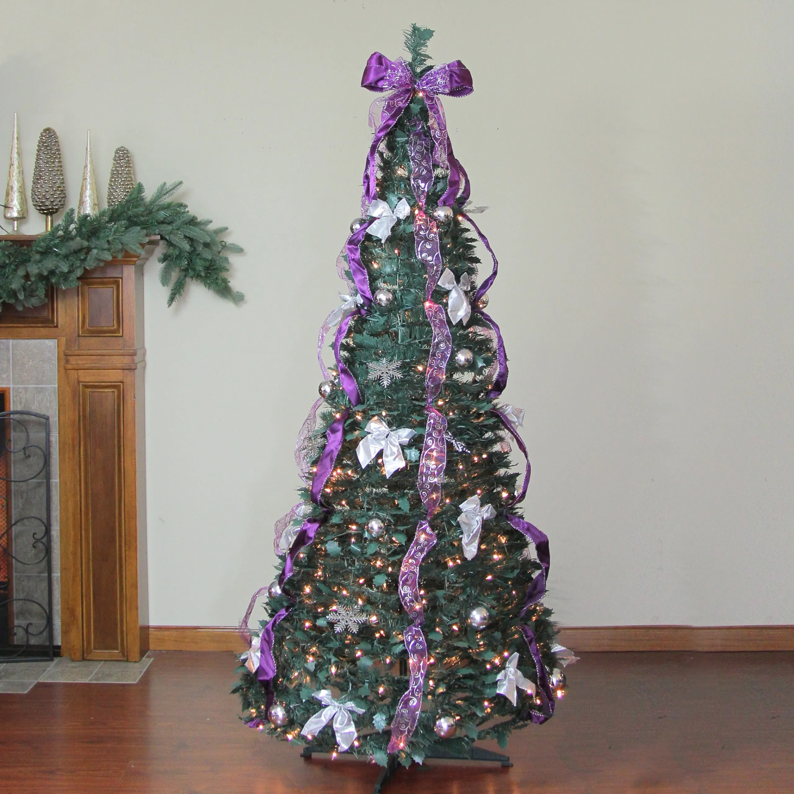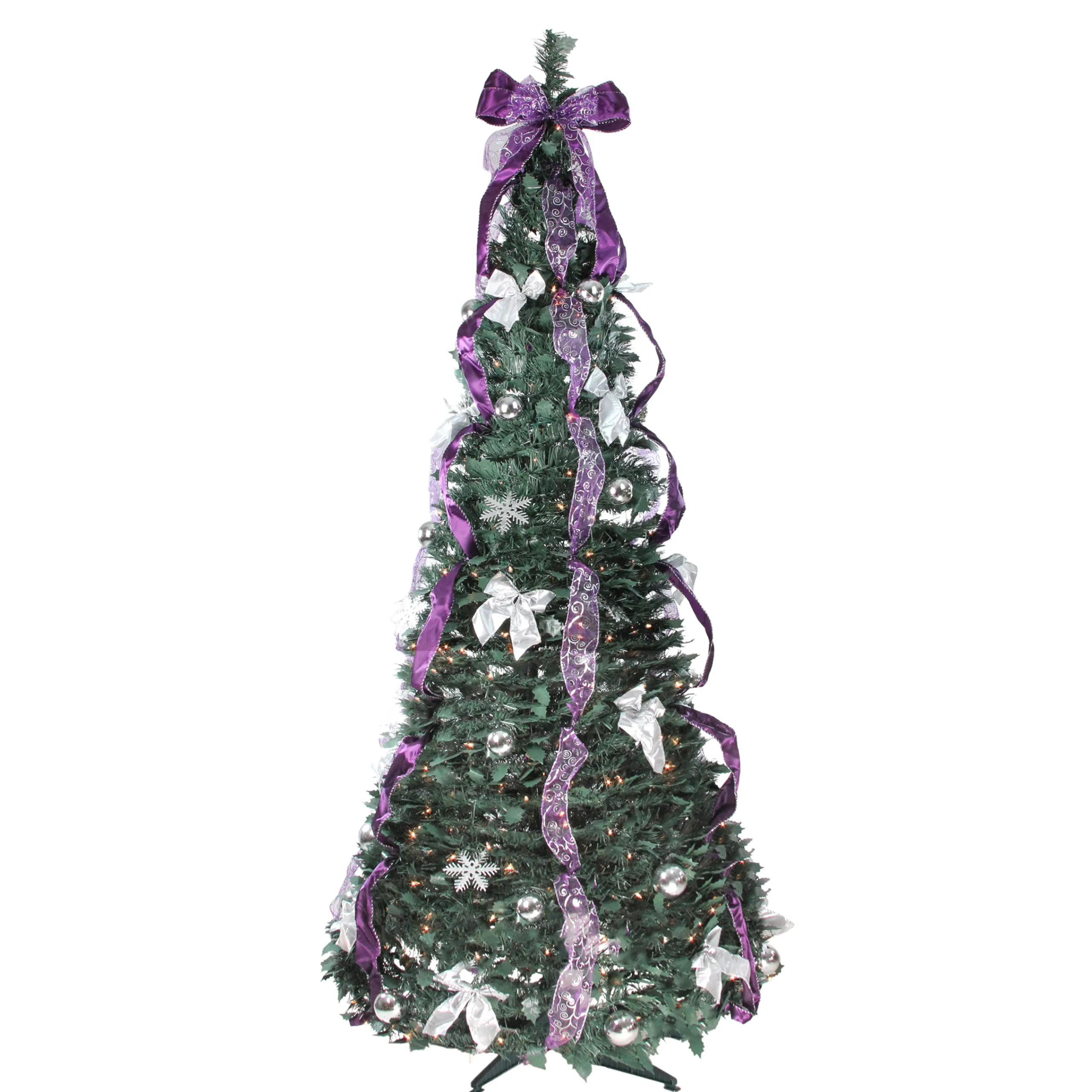 Northlight 6 And 6.5 Feet Tall>6′ Pre-Lit Purple And Silver Pre-Decorated Pop-Up Artificial Christmas Tree, Clear Lights