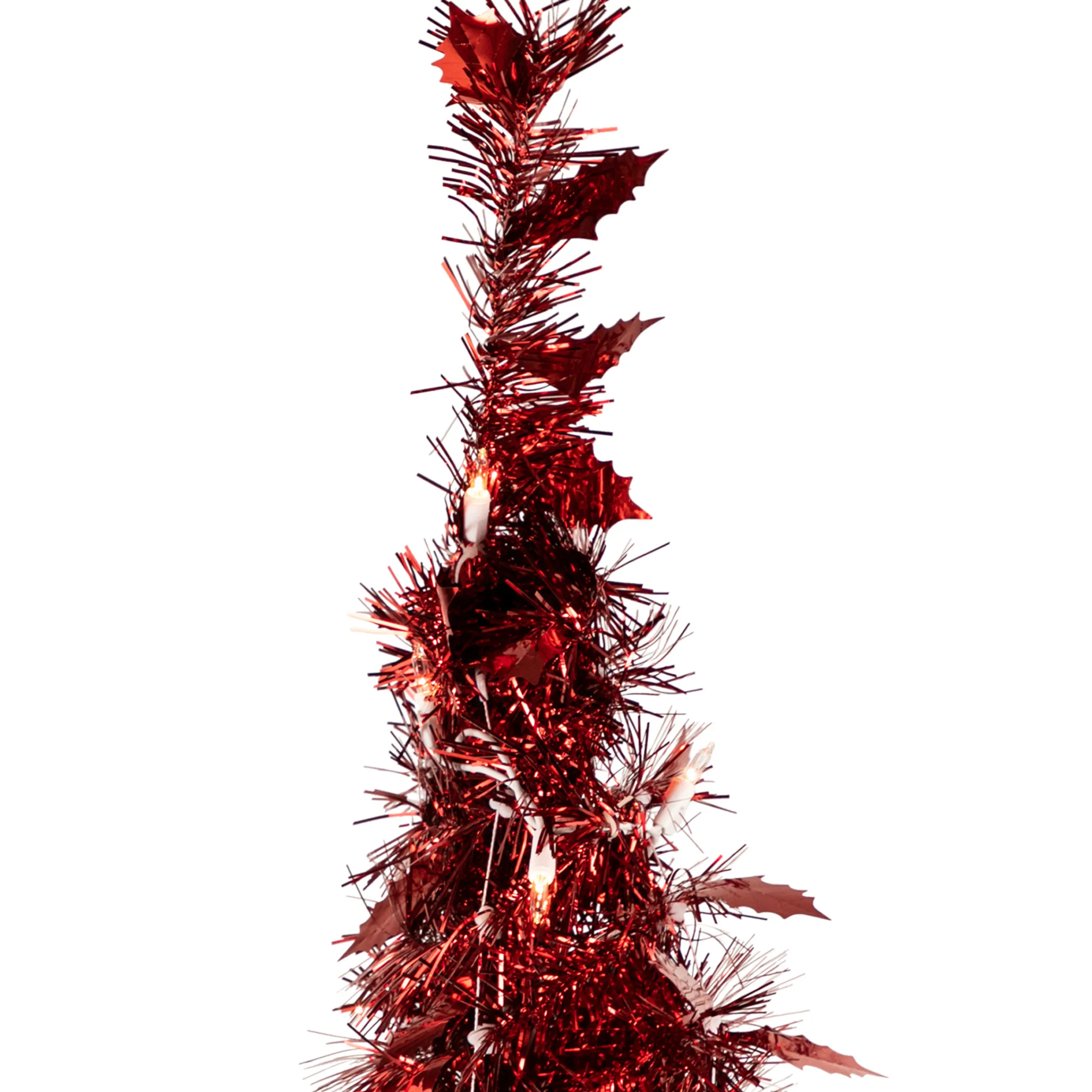 Northlight 6 And 6.5 Feet Tall>6′ Pre-Lit Red Tinsel Pop-Up Artificial Christmas Tree – Clear Lights